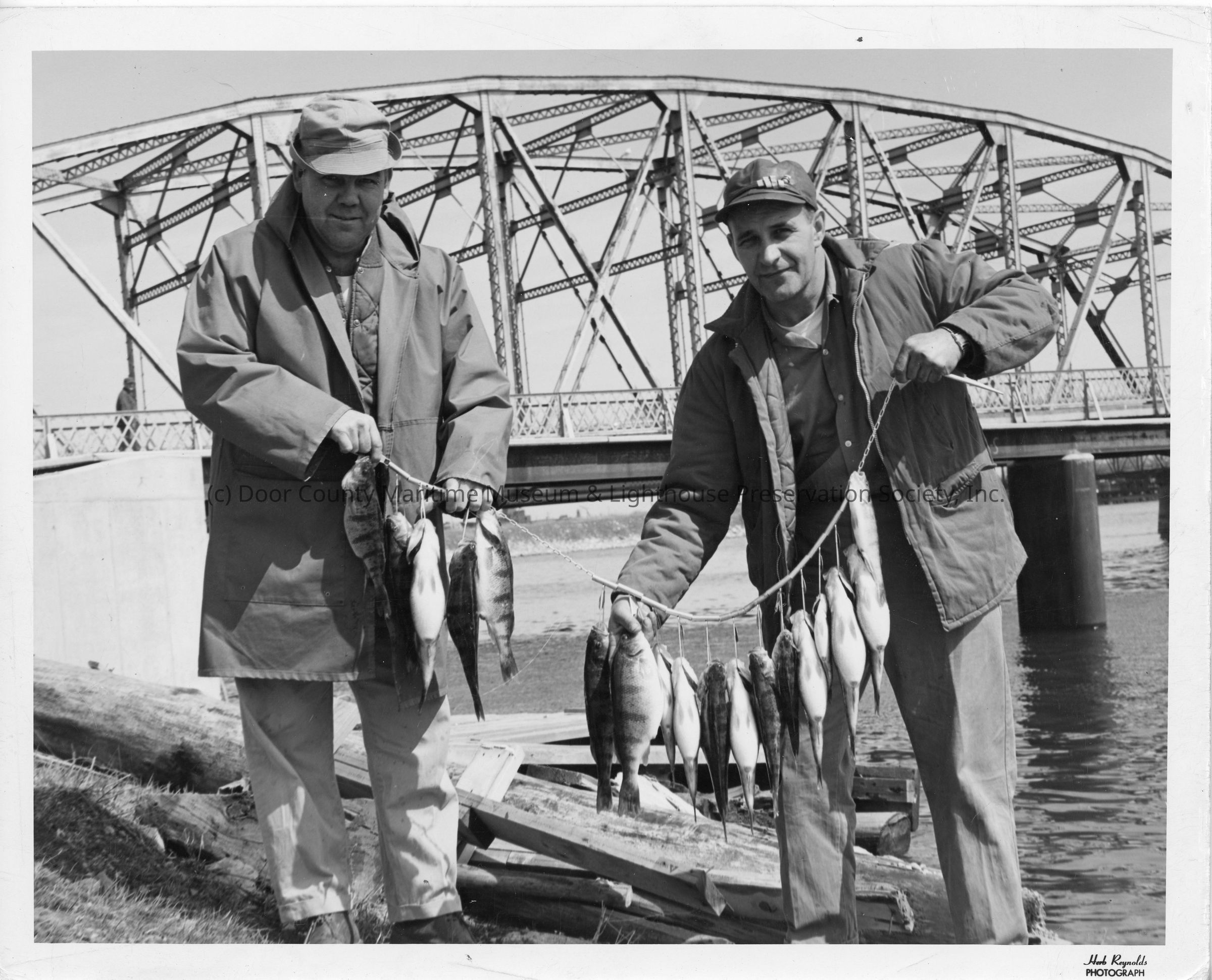 Les Meyers and Art MacMillan holding string of fish between them May , 1965Entry/Object ID