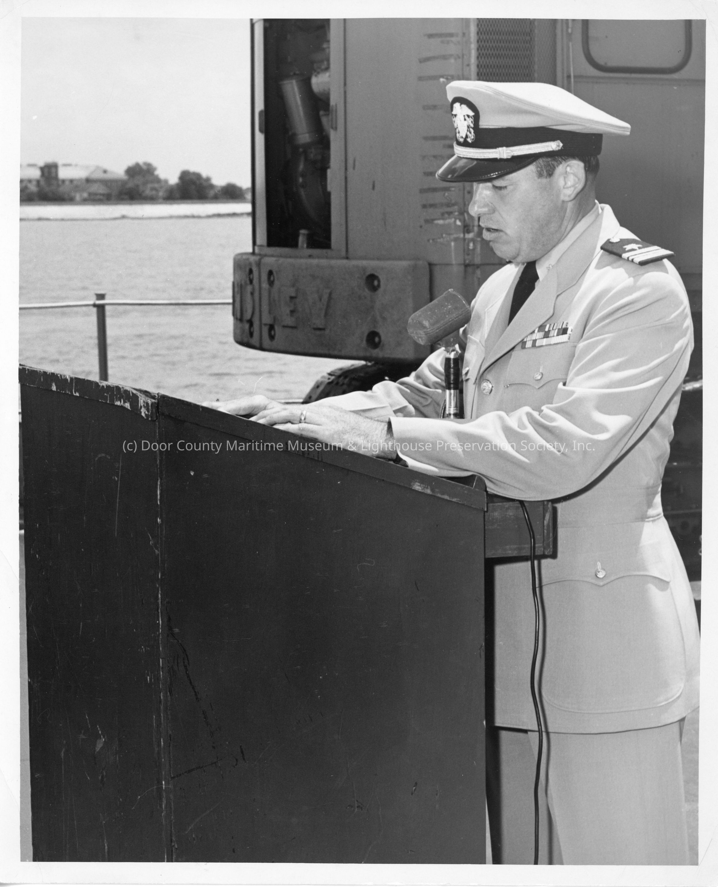 Lieutenant Commander at the launching of USNS James M. Gillis May 19, 1962