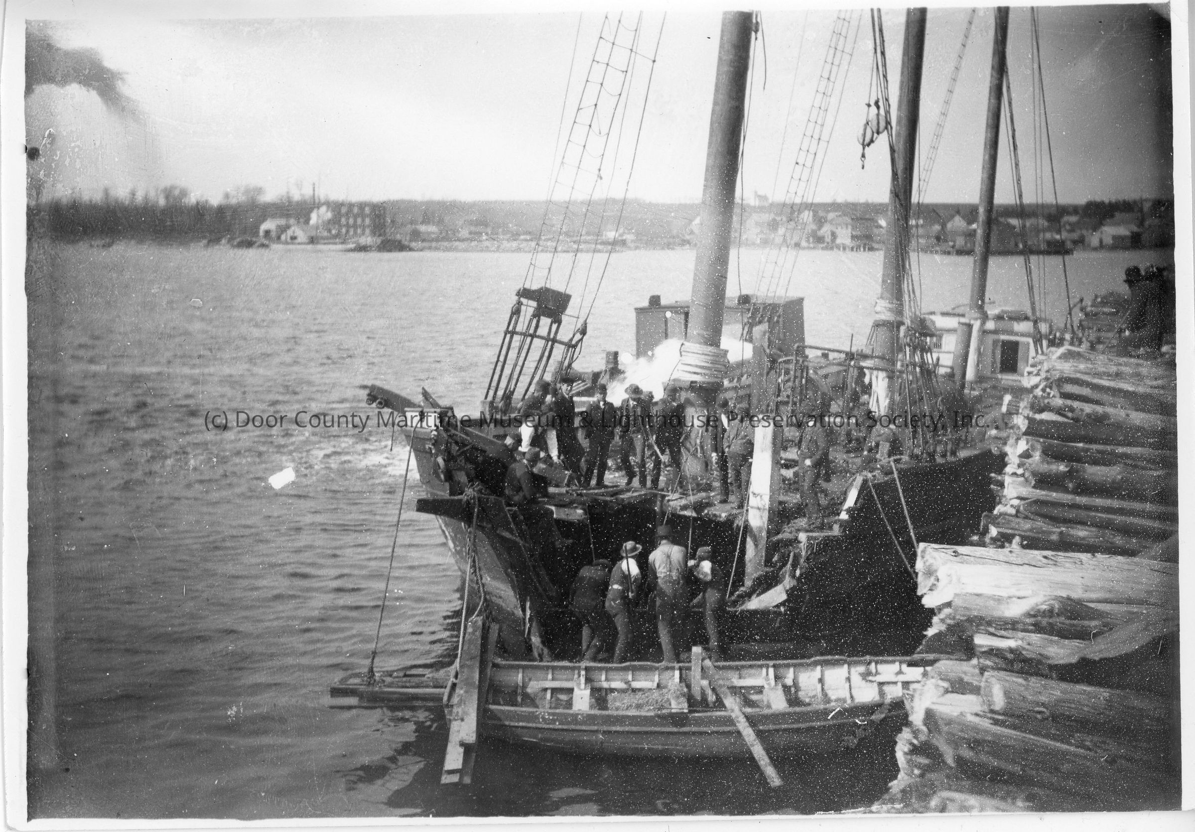 Loading posts on to ship at dock 1890