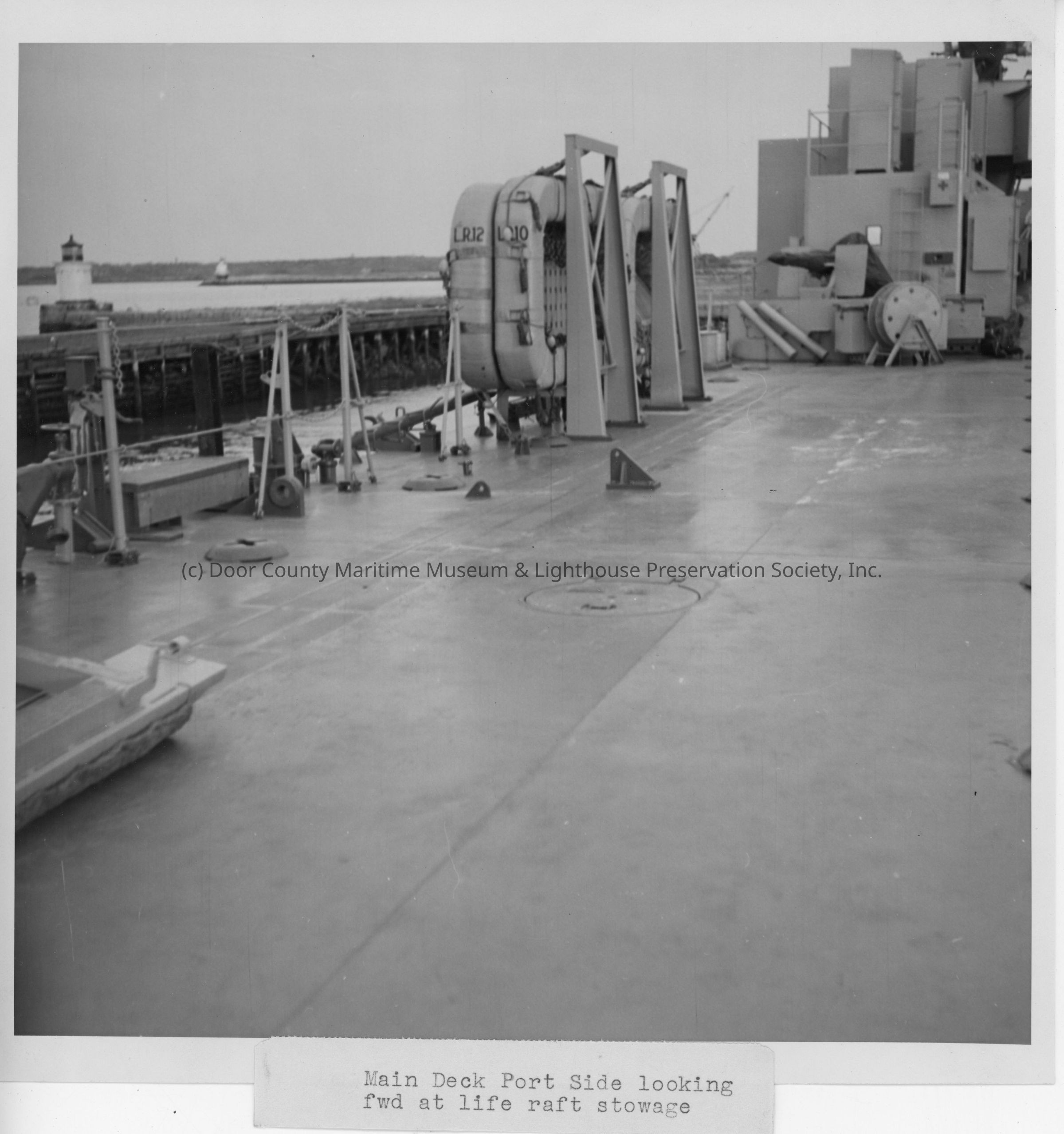 LST main deck port side looking forward at life raft stowage