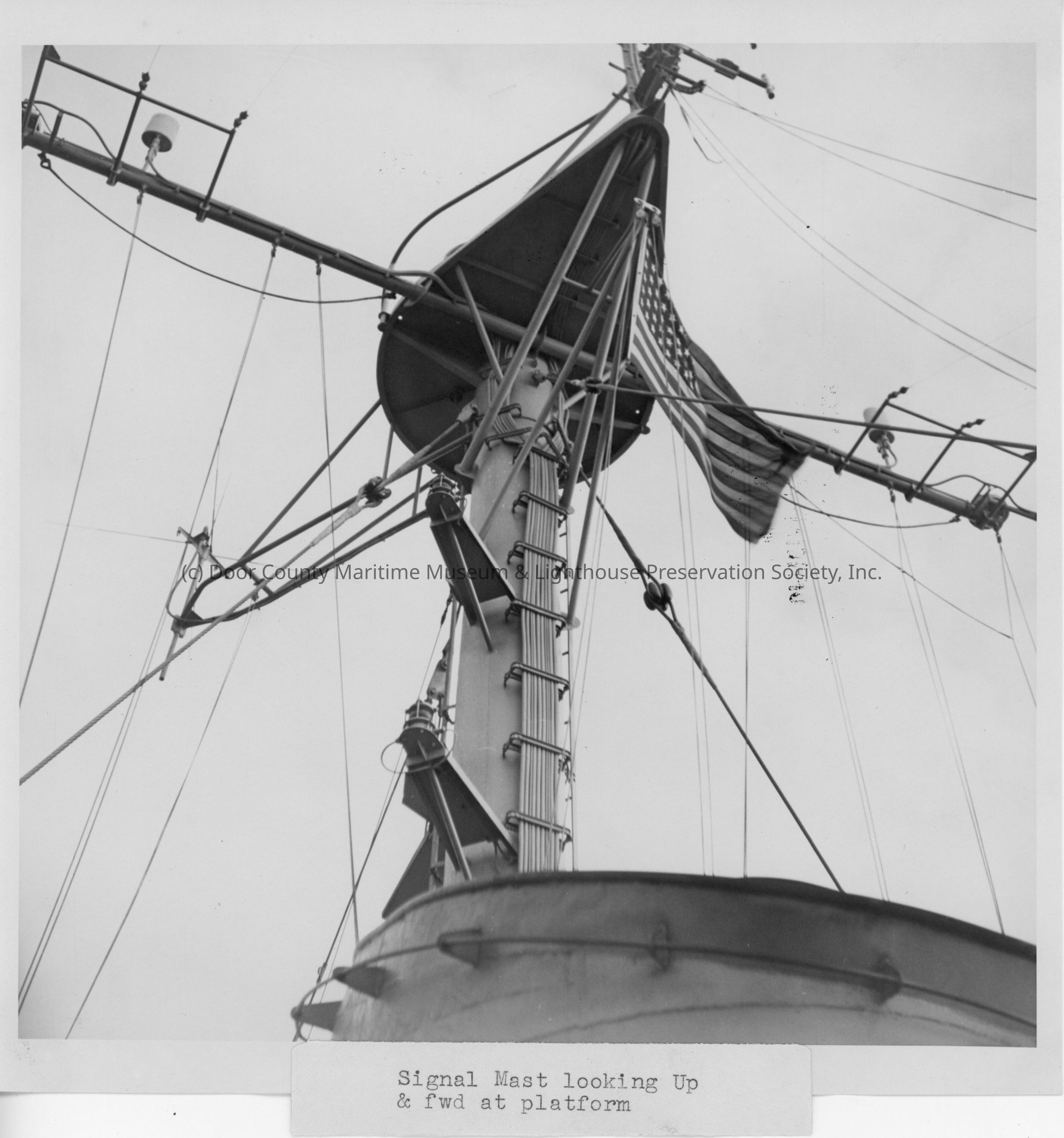 LST signal mast looking up and forward at platform
