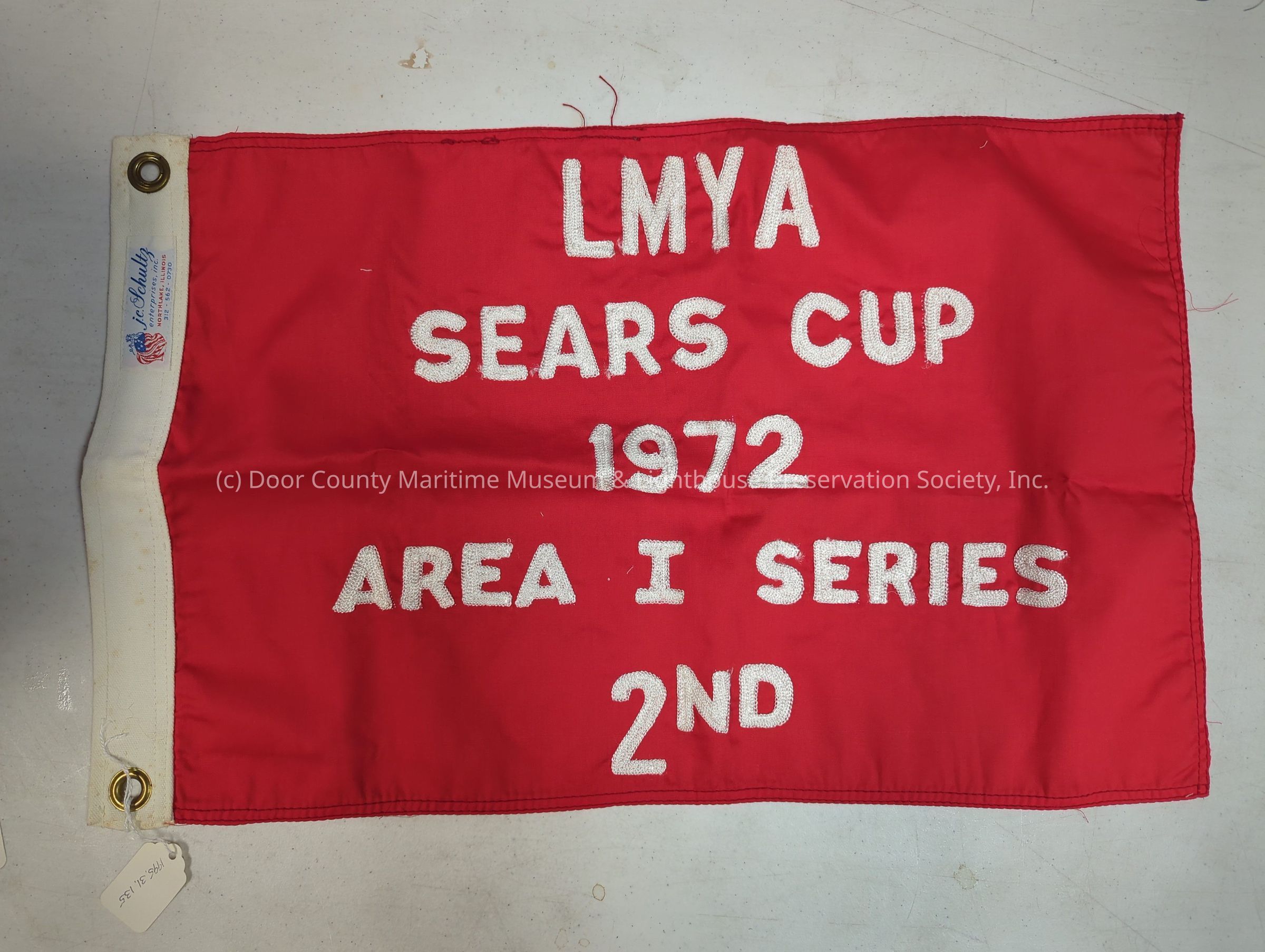 Banner: (bright red) printed in white: "LMYCA Sears Cup 1972 Area I Series 2nd'; lettering height 1 1/4".Location