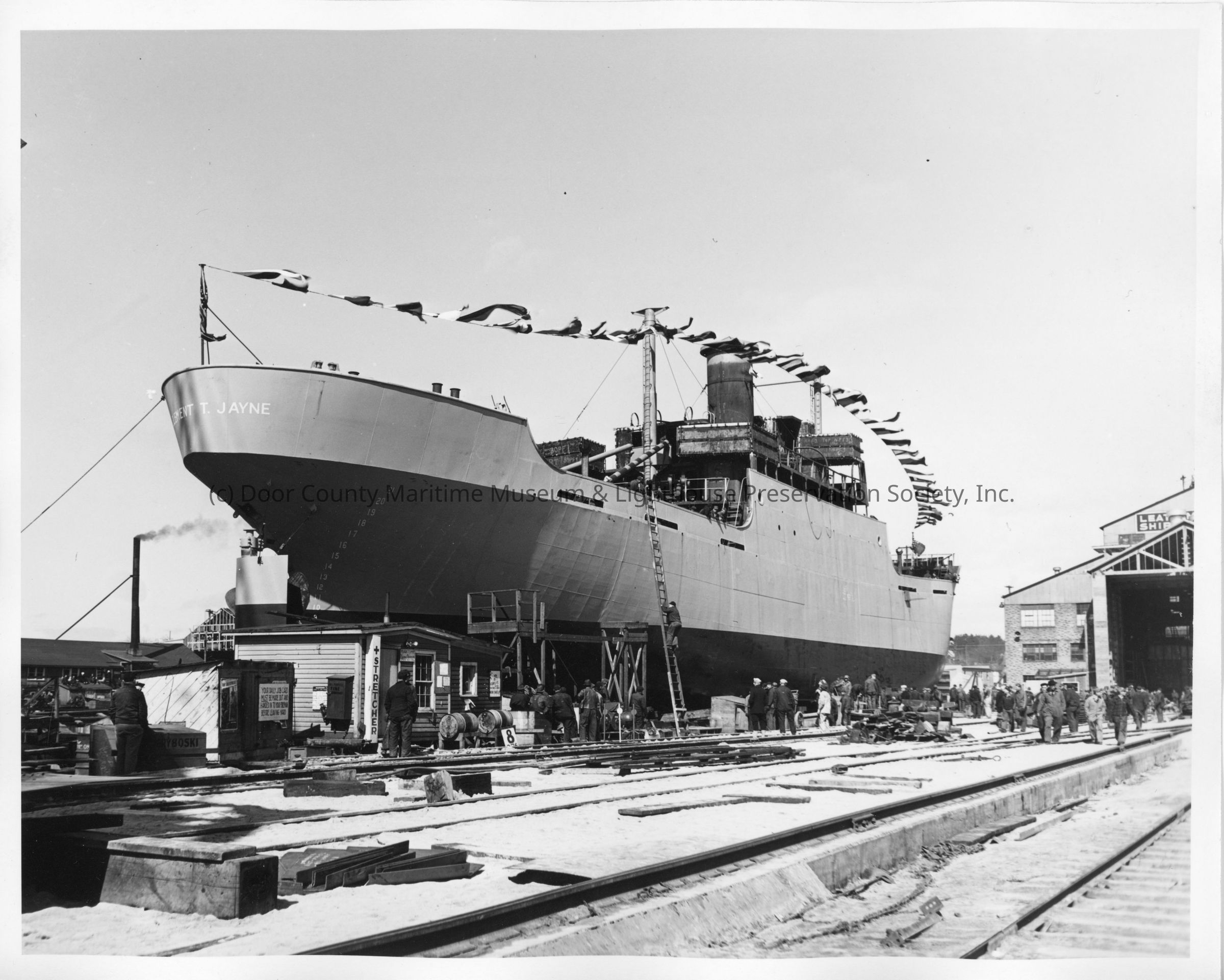 Man climbing ladder on Clement T. Jayne at Leathem D. Smith Shipbuilding Co.Entry/Object ID