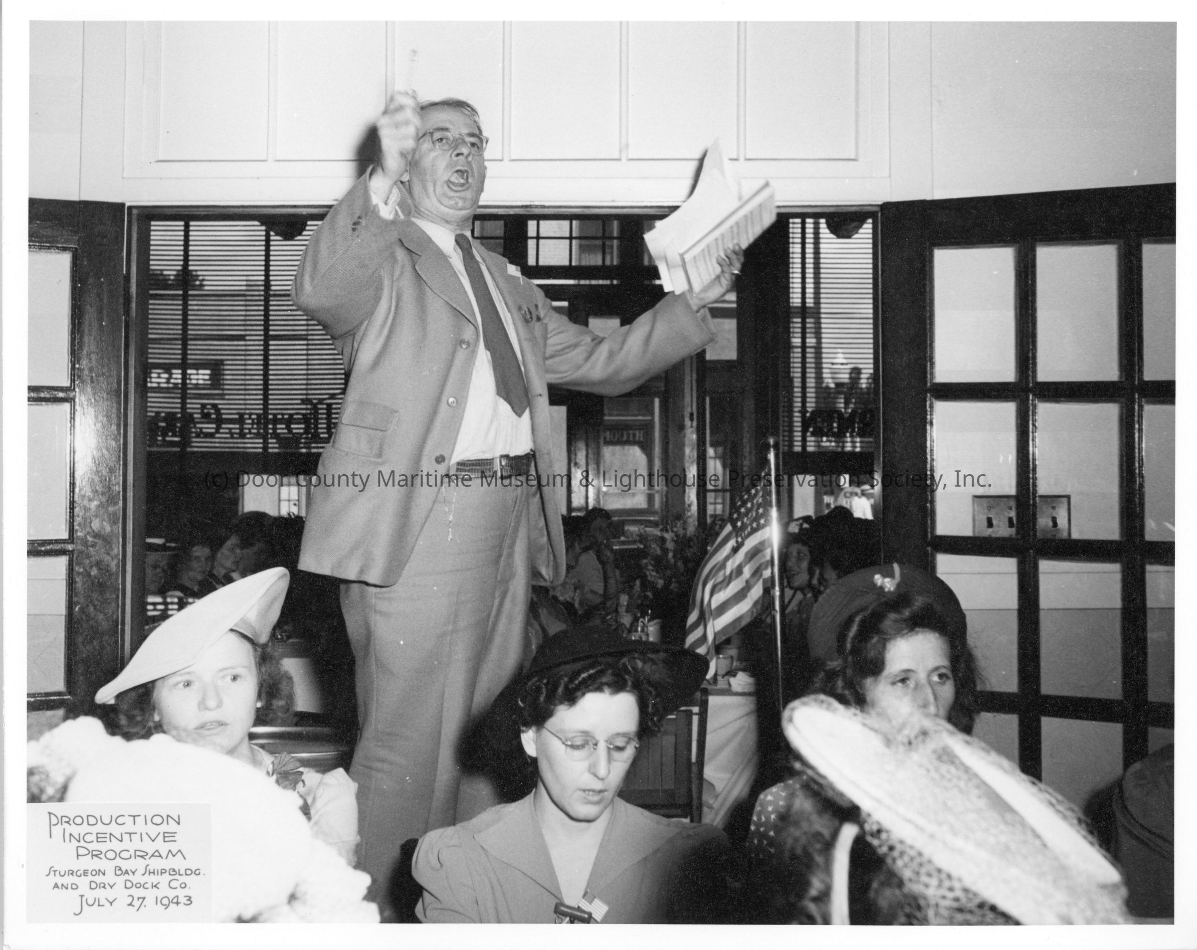 Man giving speech at SBSB&DD Co. production incentive program July 27, 1943Entry/Object ID