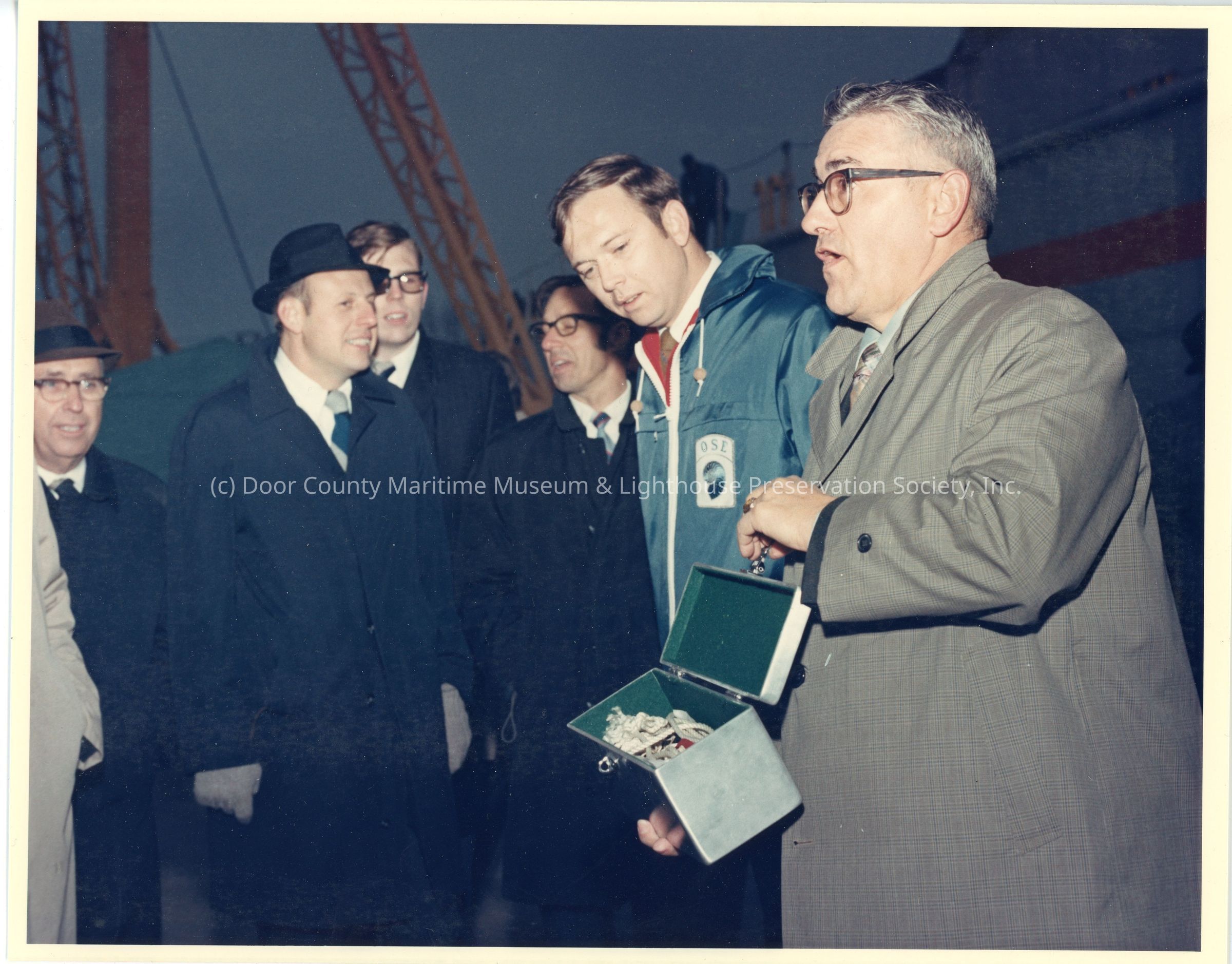 Man holding Alcoa Seaprobe christening box