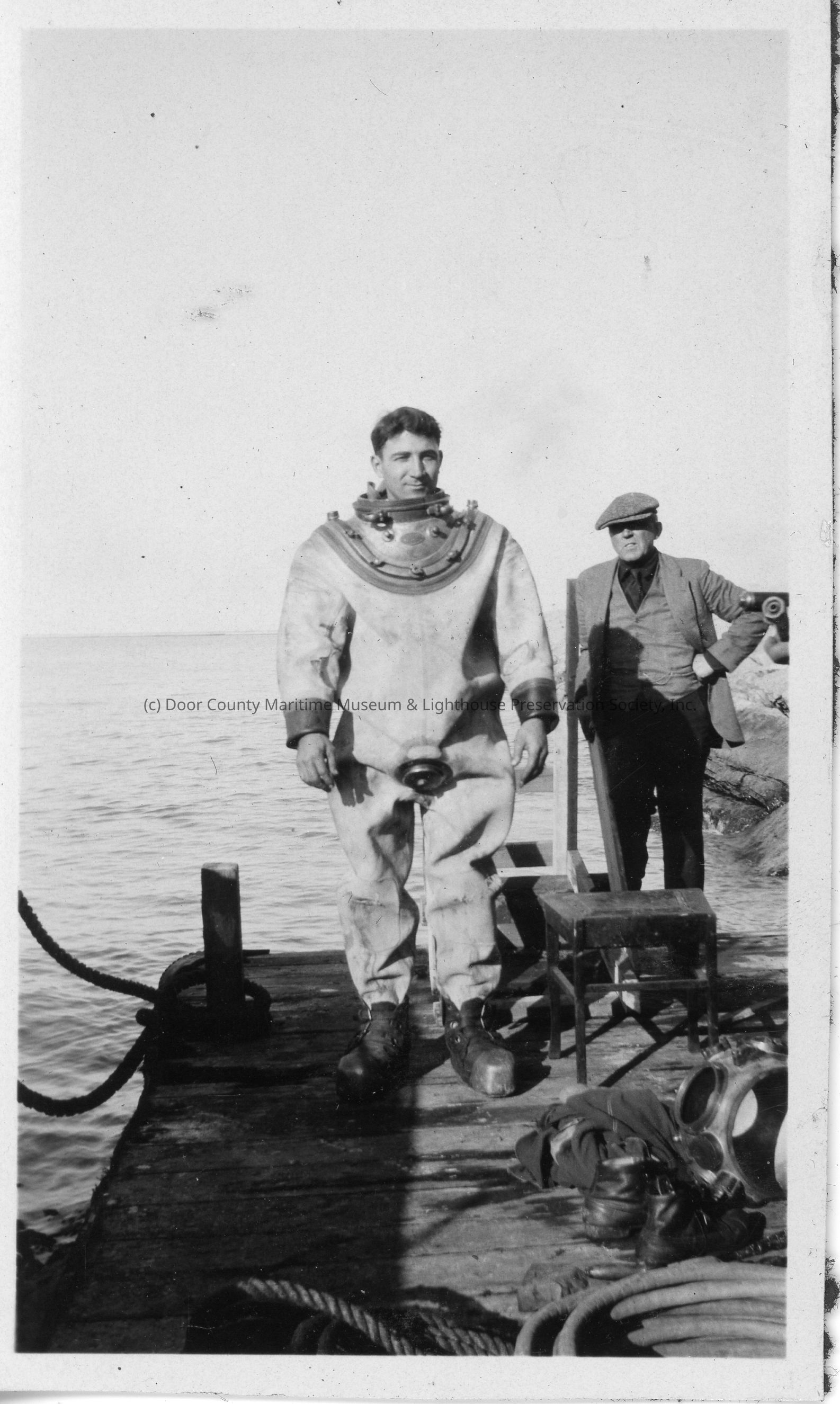 Man in diving gear on barge