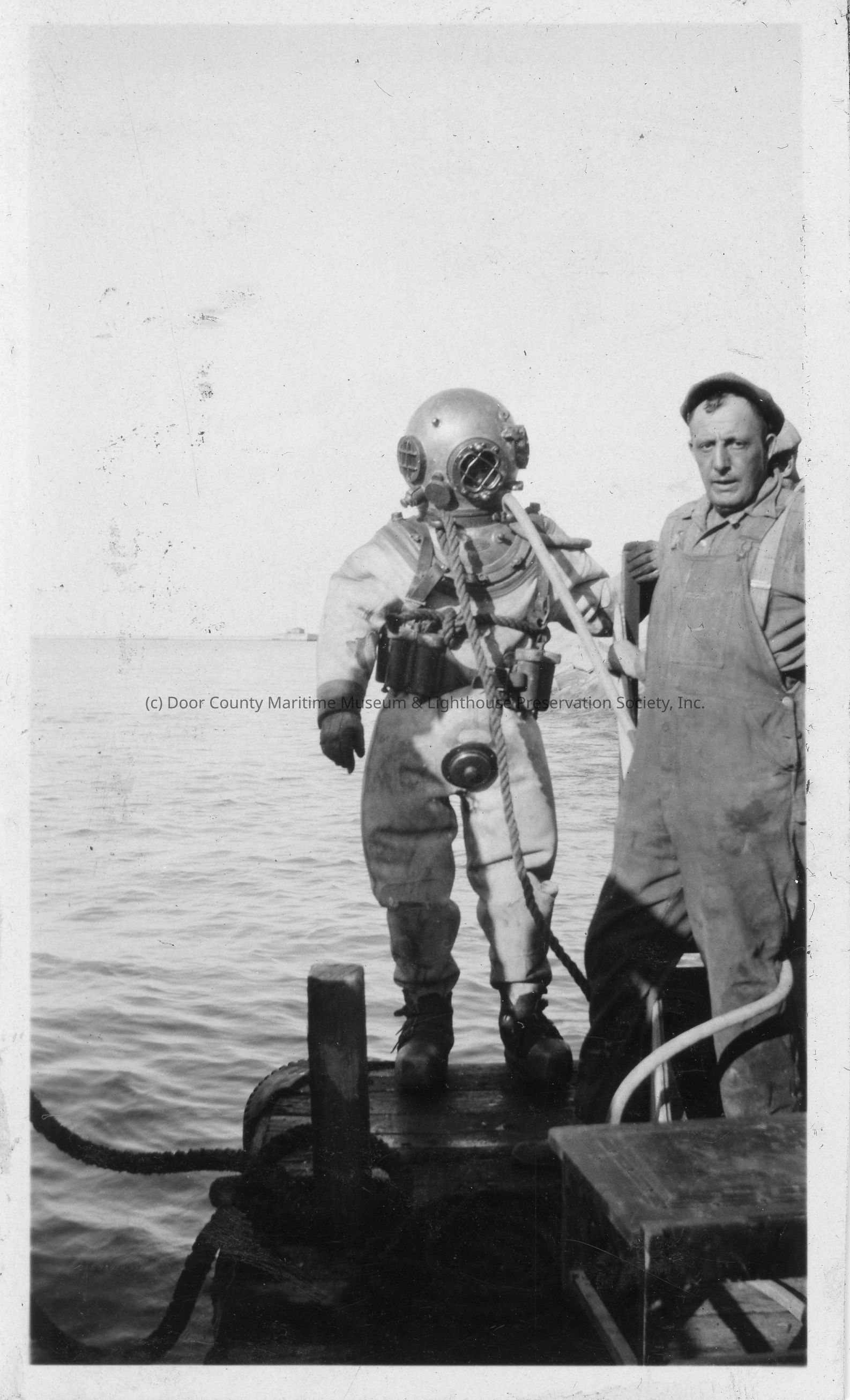 Man in diving gear on barge