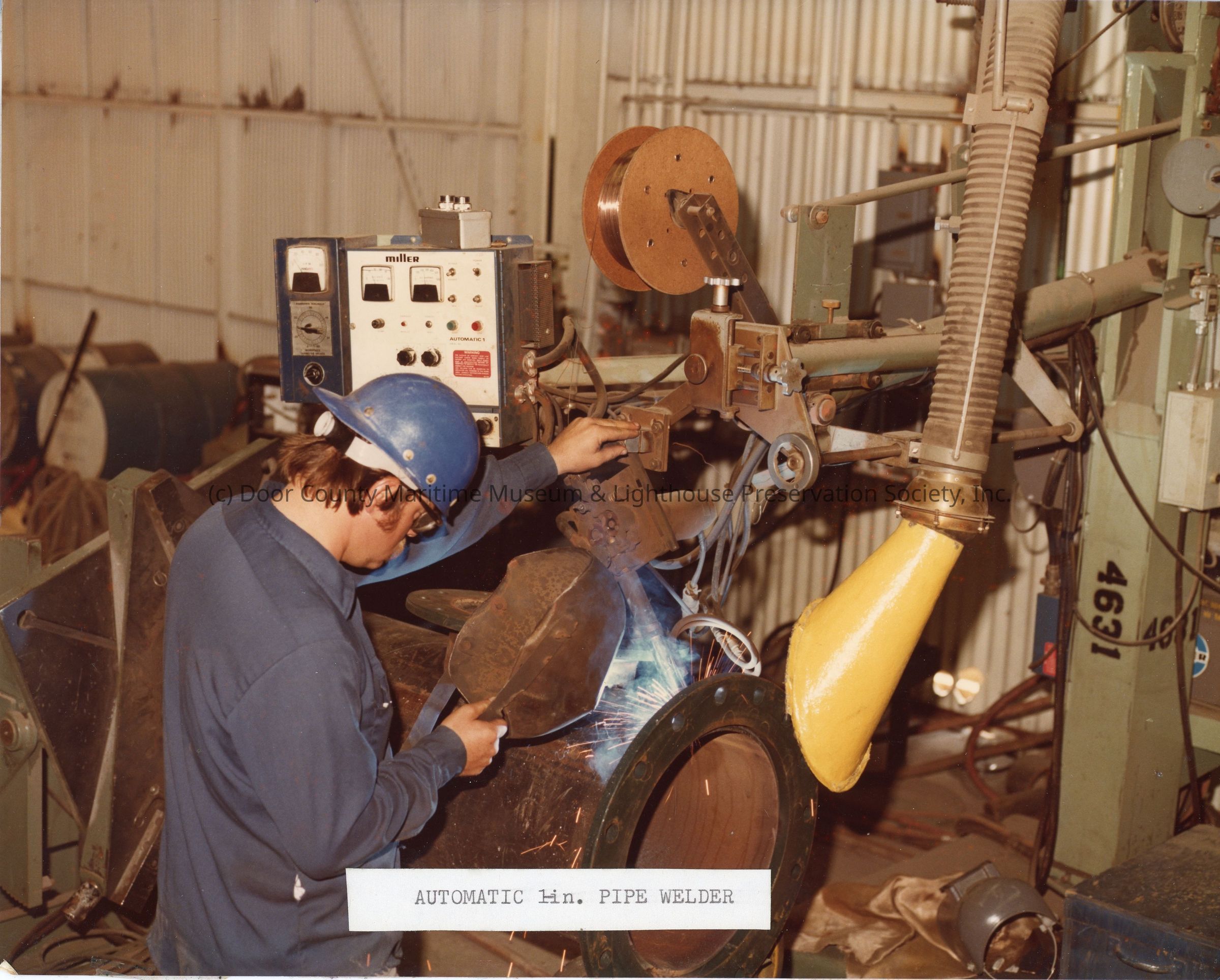 Man in hard hat with Miller Automatic Pipe Welder
