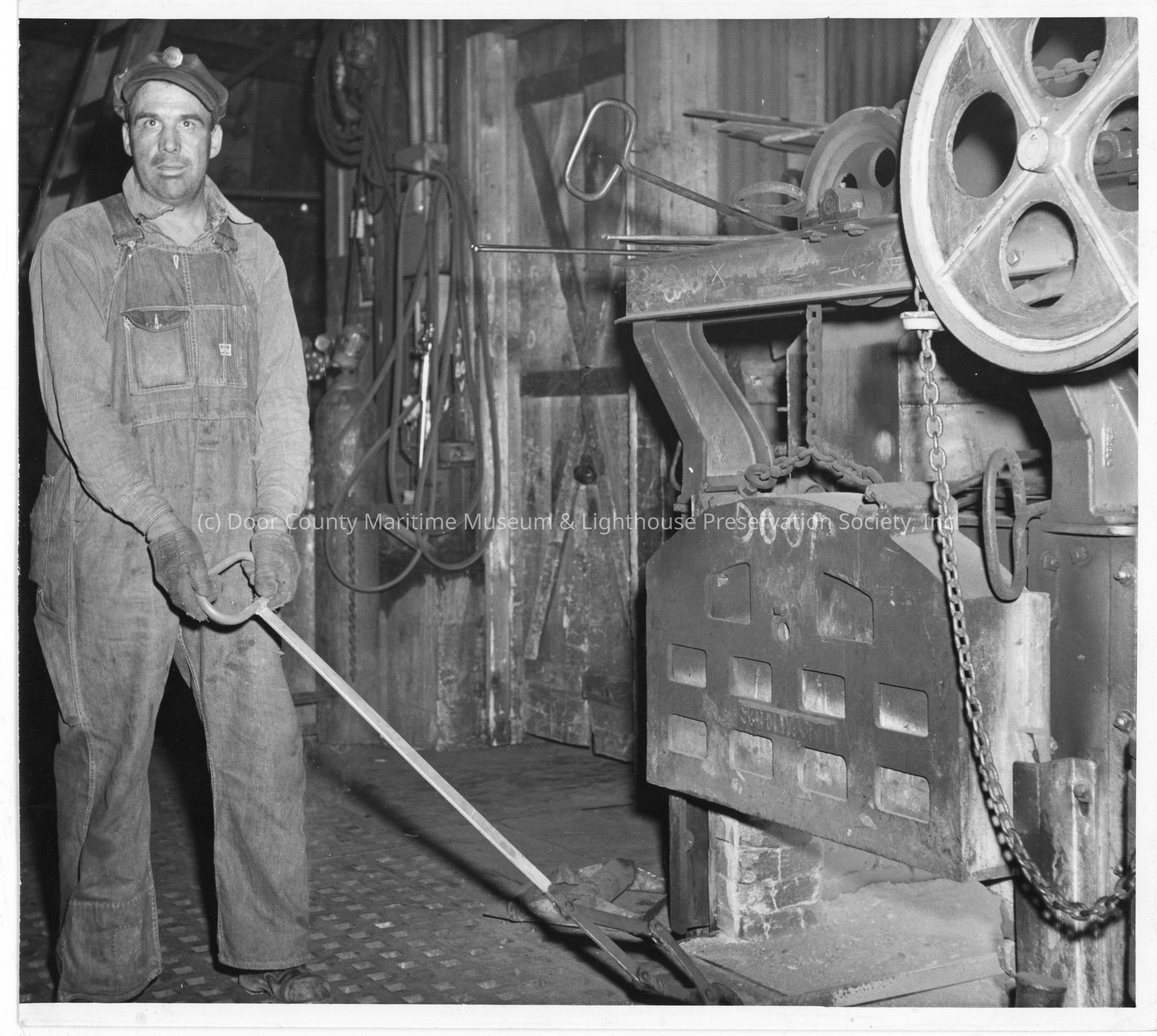 Man in overalls in workshop holding handleEntry/Object ID