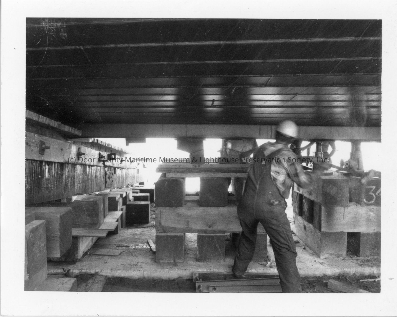 Man installing keel block under the Margaret L at PBI August 19, 1972Entry/Object ID