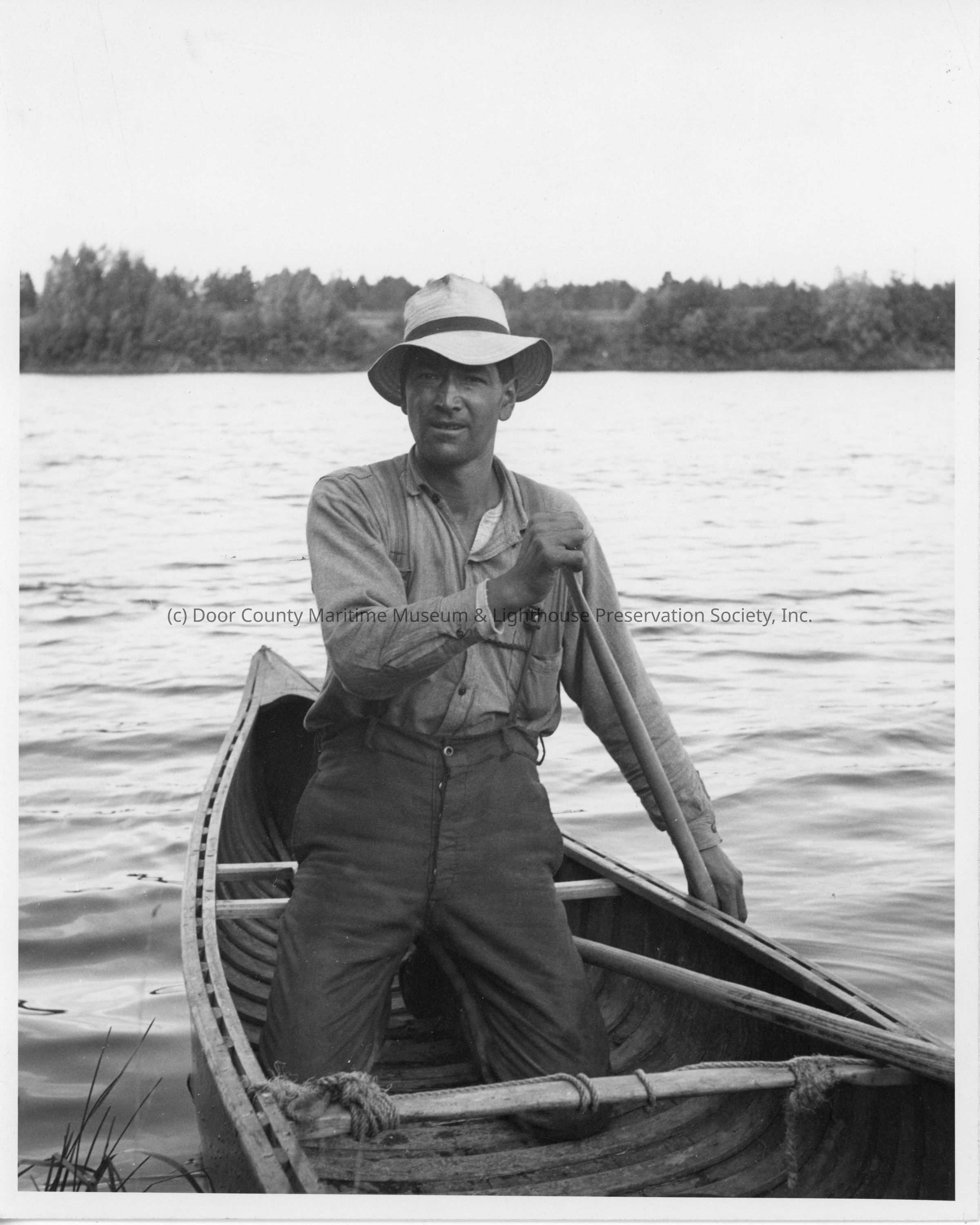 Man kneeling in a canoe mississagi drive August 1944