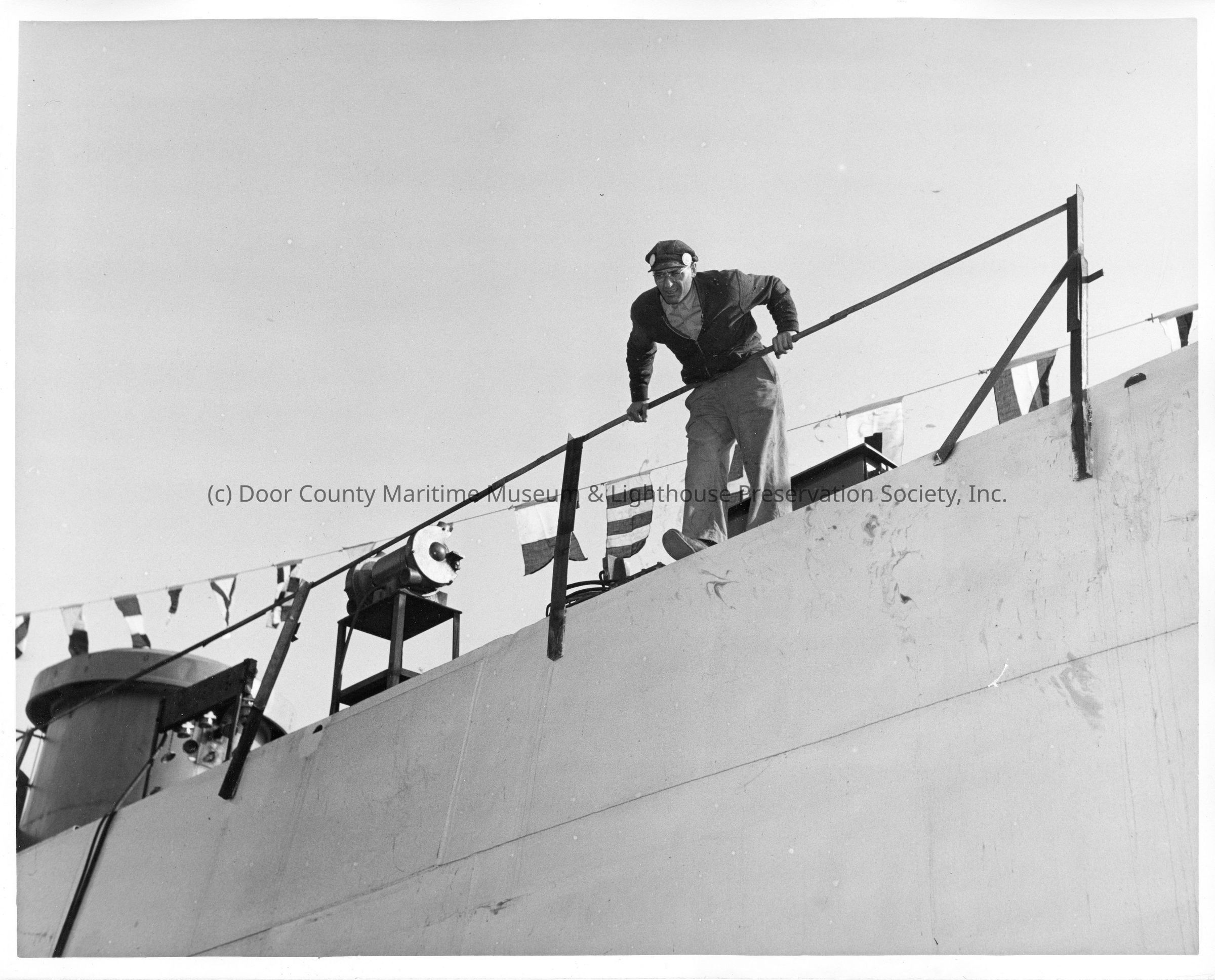 Man leaning over balcony of ship
