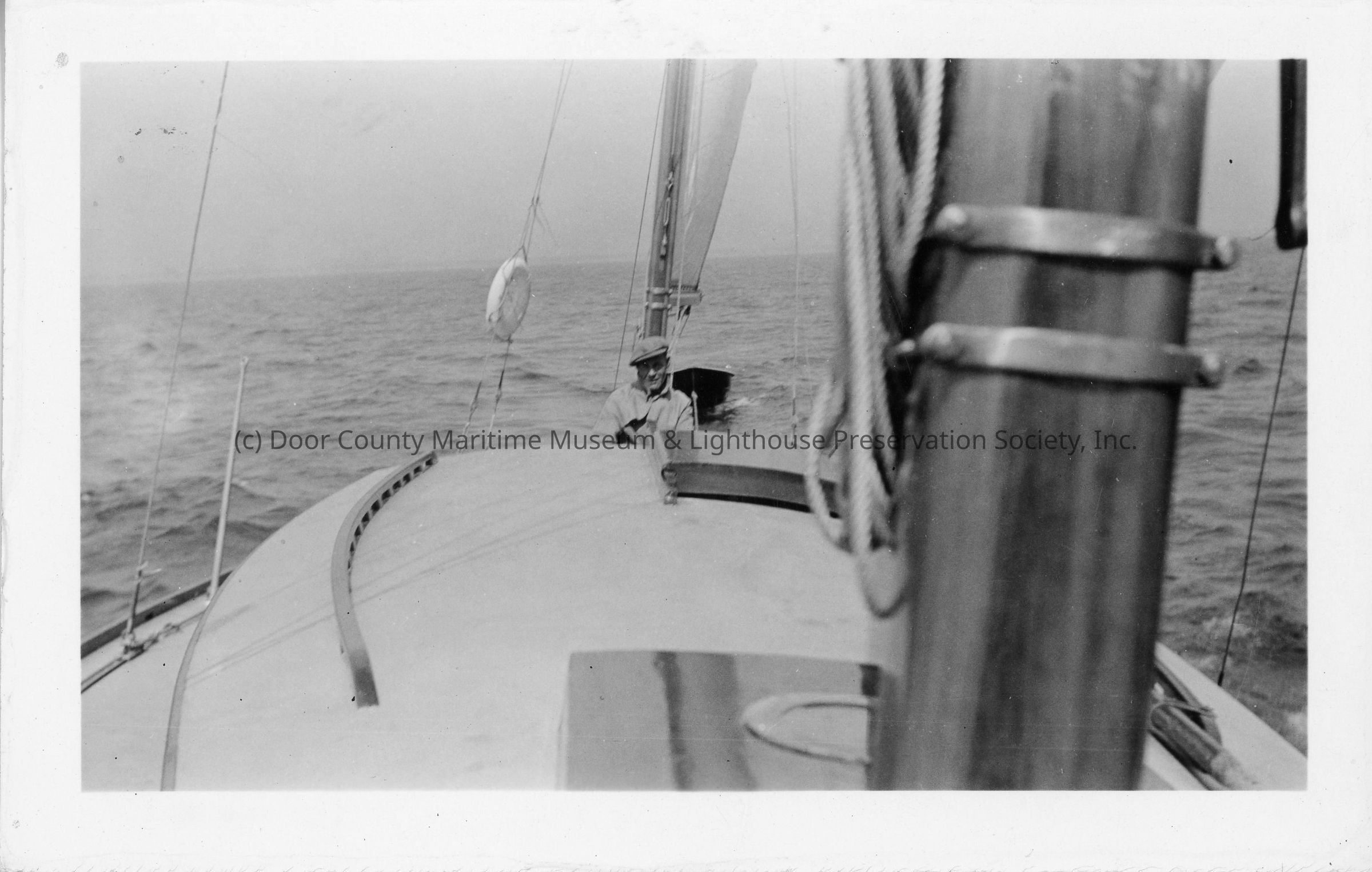Man sitting on bow of Adventure