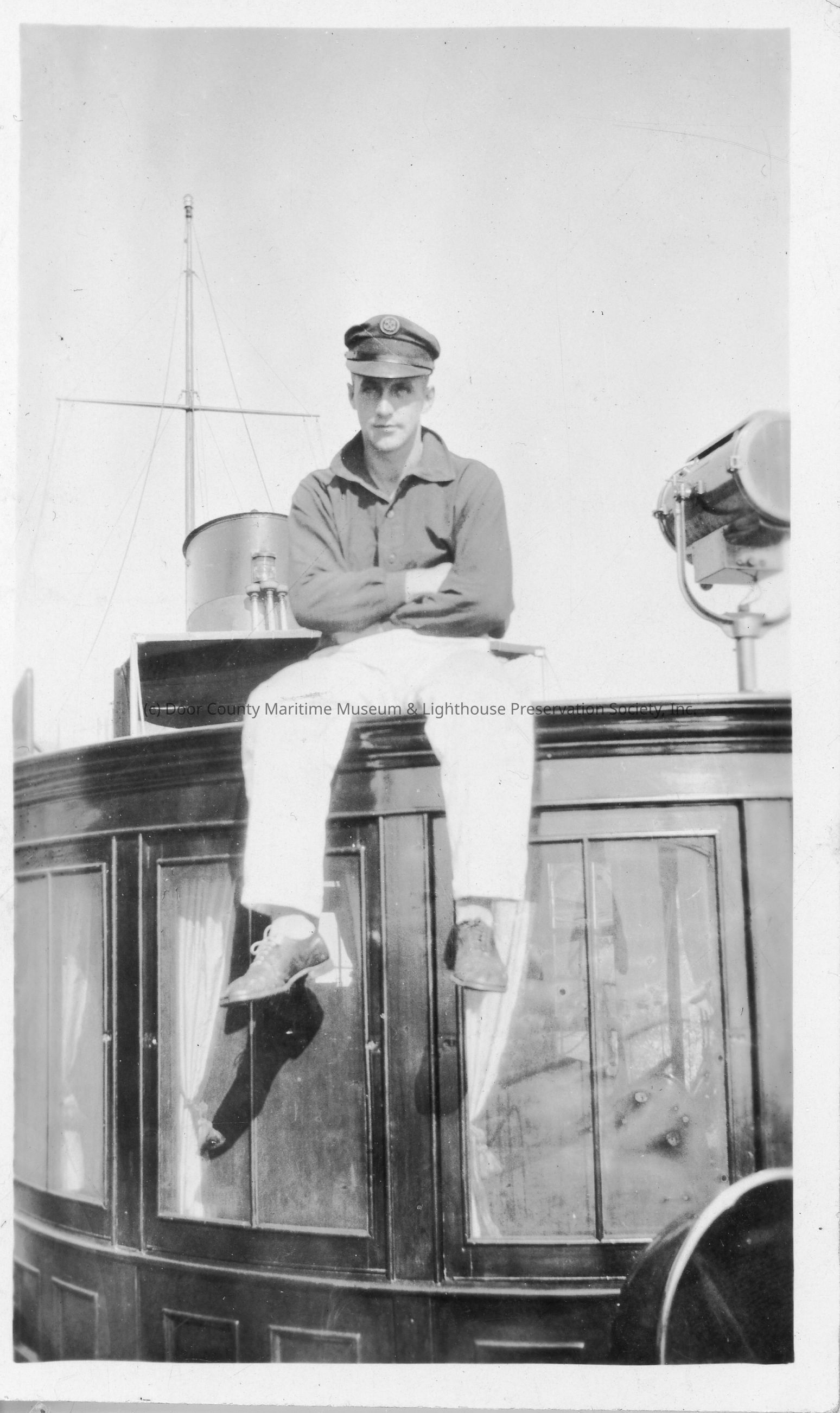 Man sitting on pilothouse