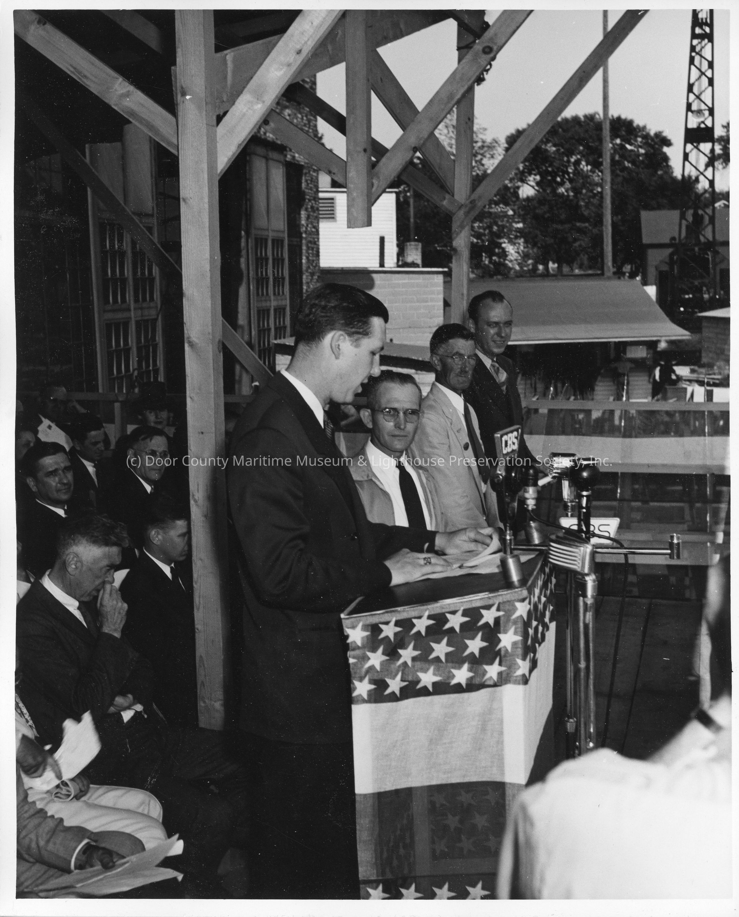 Man standing behind podium on stage