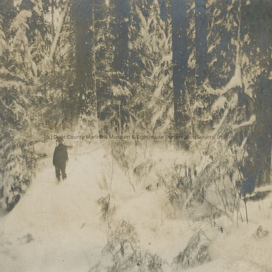 Unidentified man in snowy woods