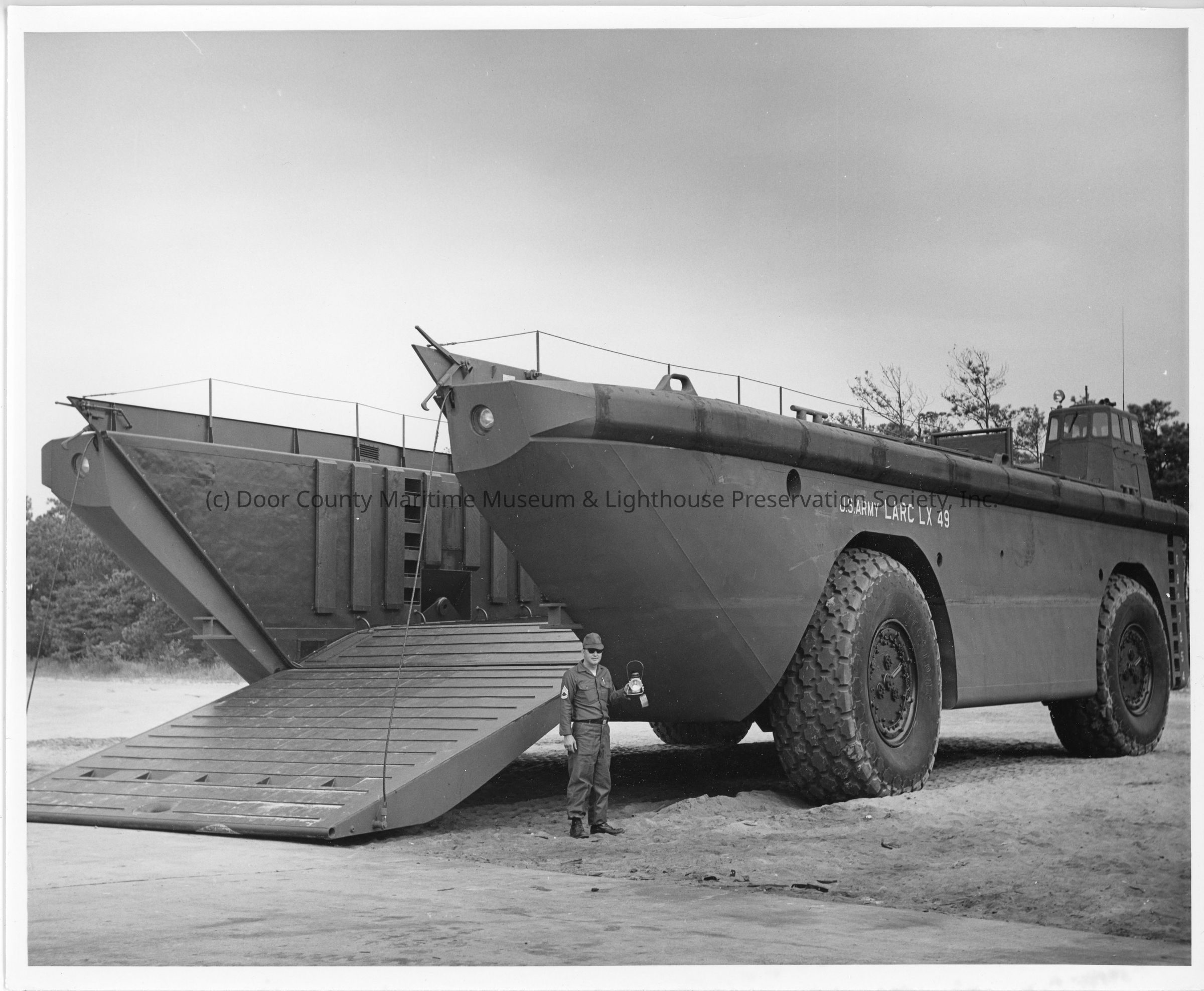 Man standing next to US Army Larc LX49 with ramp downEntry/Object ID