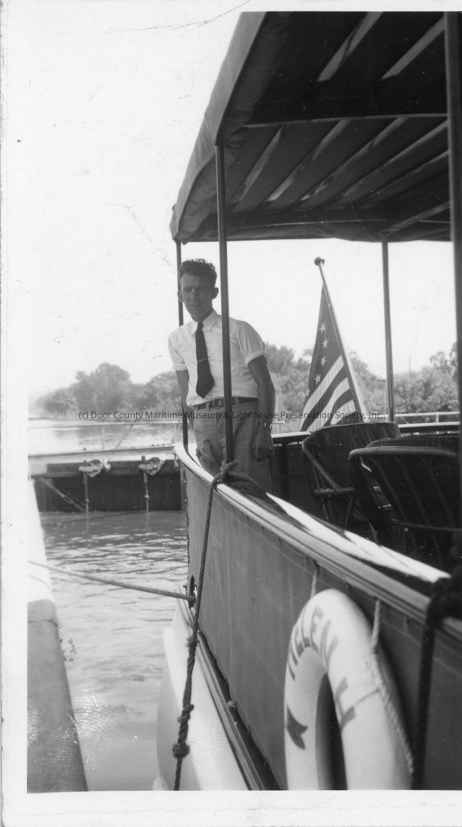 Man standing on stern of vessel Hellen H