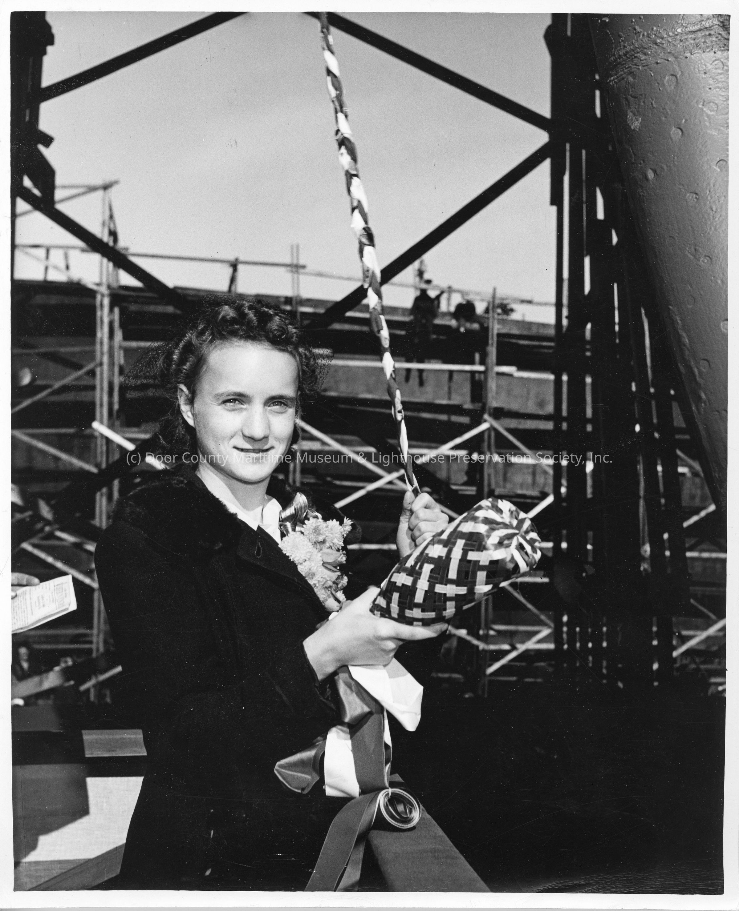 Marilyn Hughes about to christen AK-209 Schyler