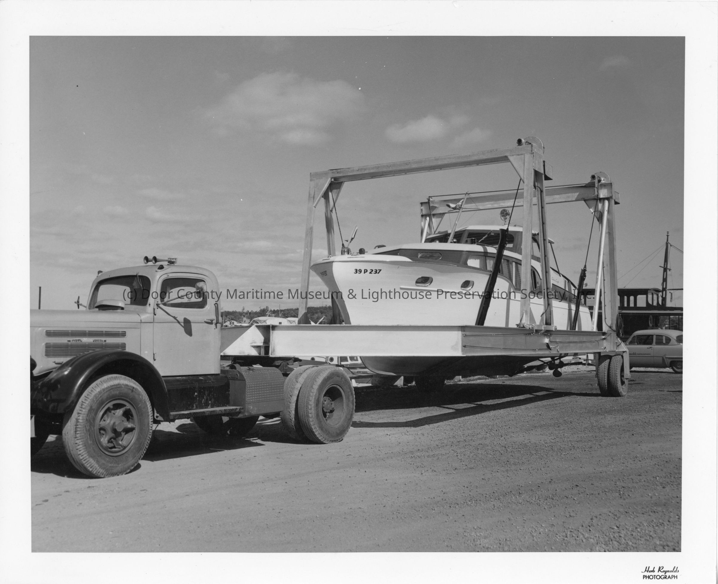 Marine Travelift holding yacht 39P237