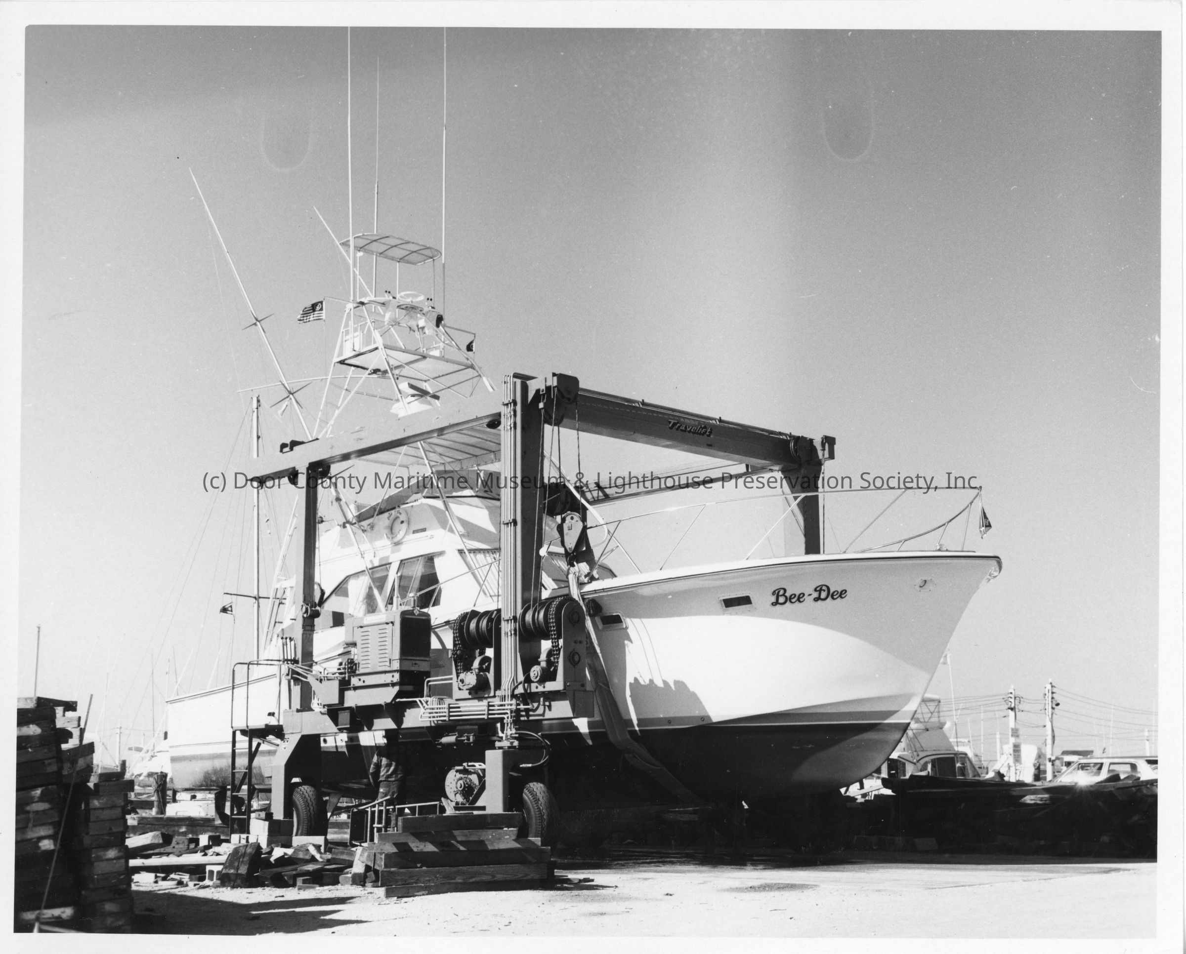 Marine Travelift holding yacht Bee-Dee