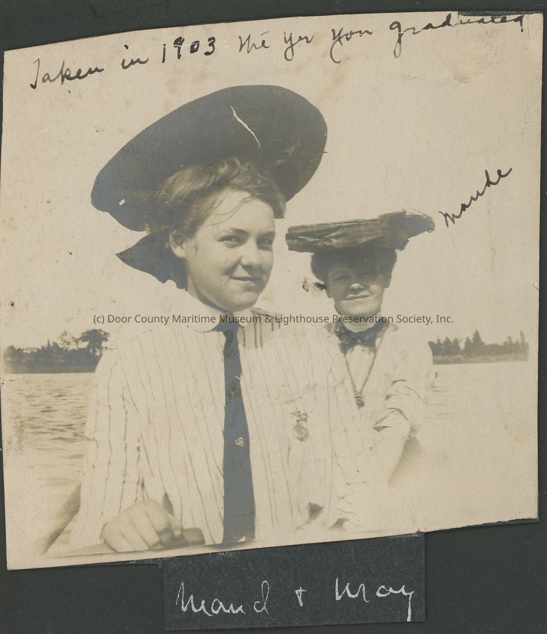 Two women in a boat, identified as Maude and Mary "Taken in 1903 me and your grandmother"
