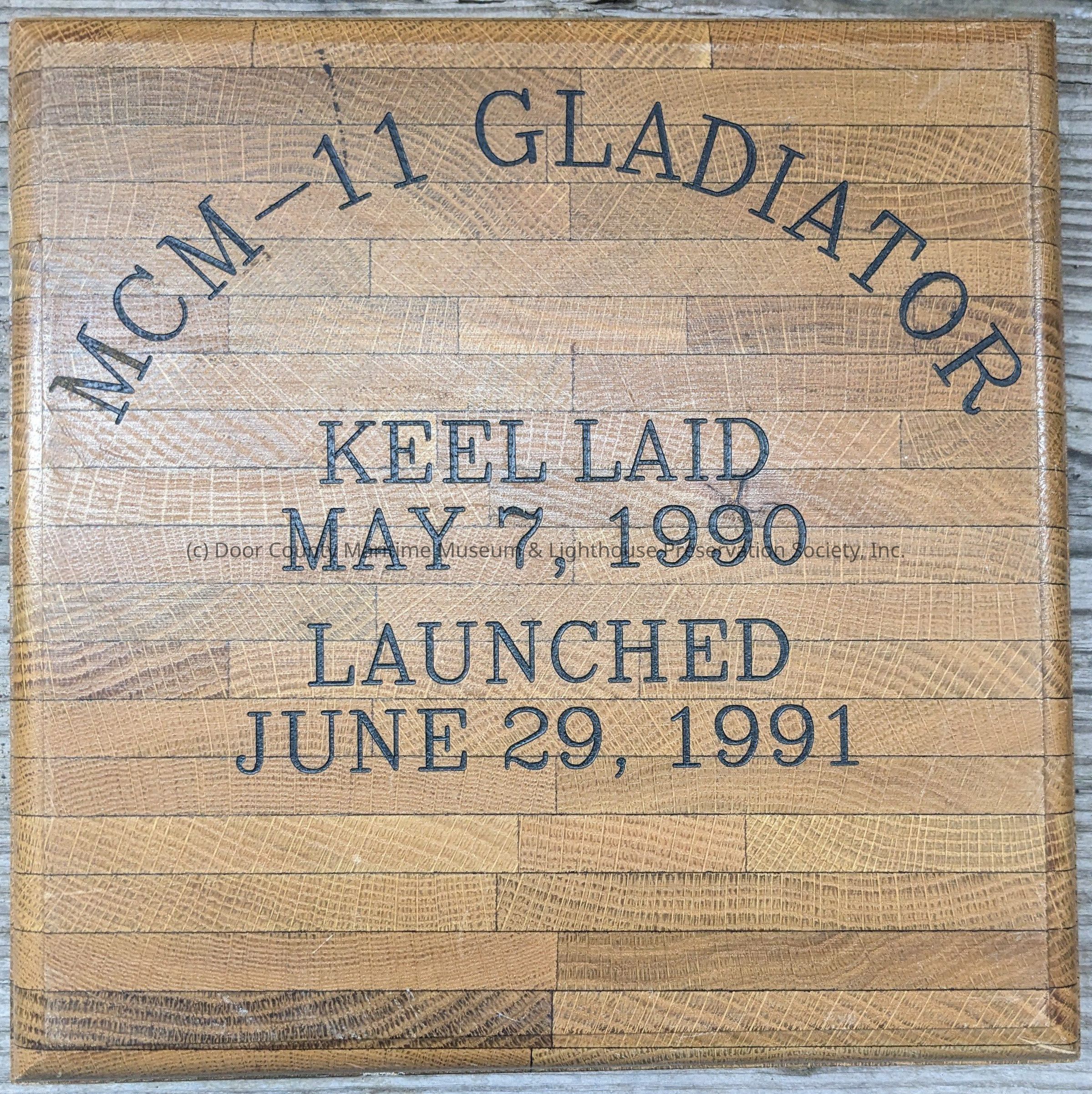 Wooden plaque with text "MCM-11 Gladiator"