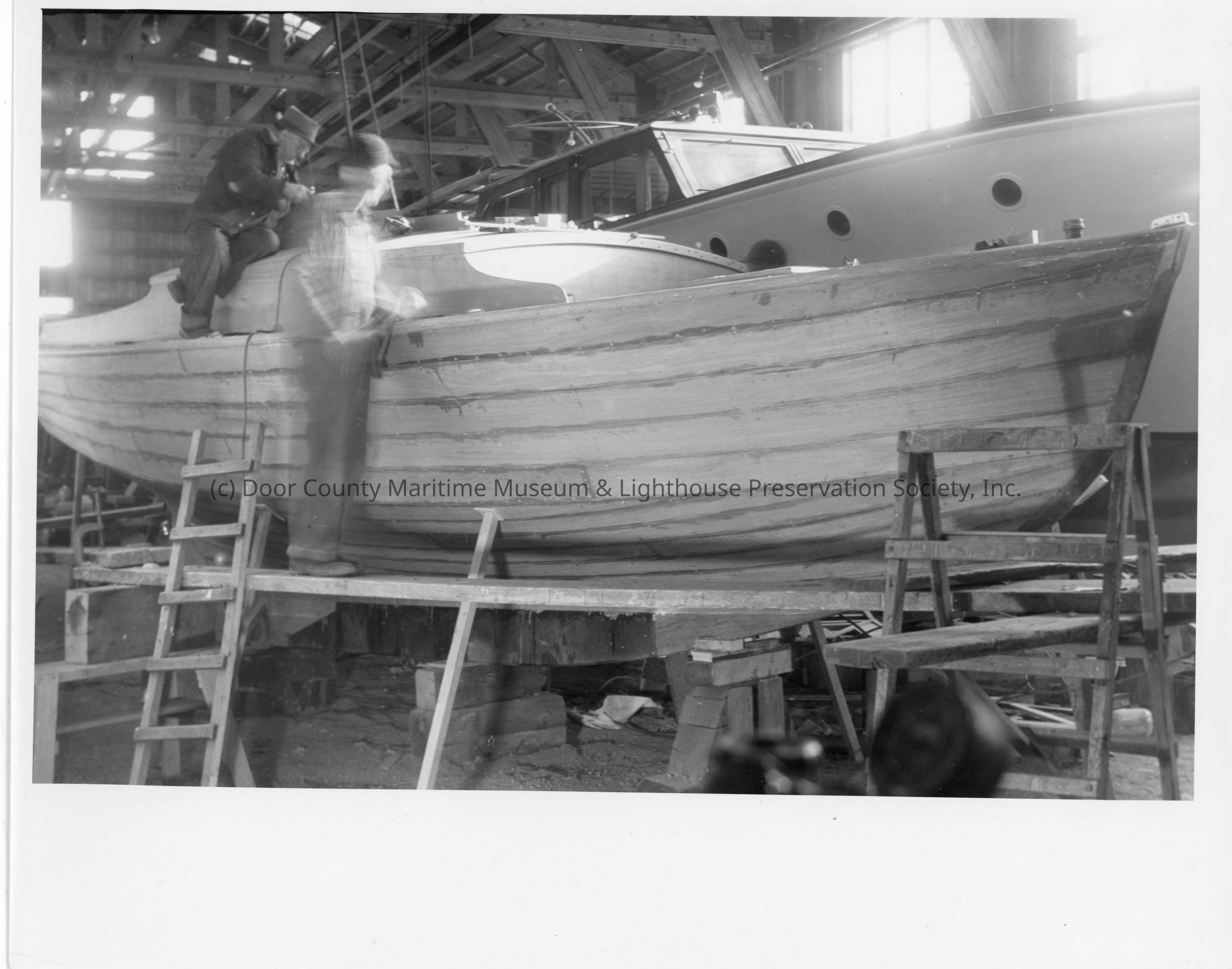 Mel Christianson and John Nyholm working on 27' sloop Cameo at PBI 1948Entry/Object ID