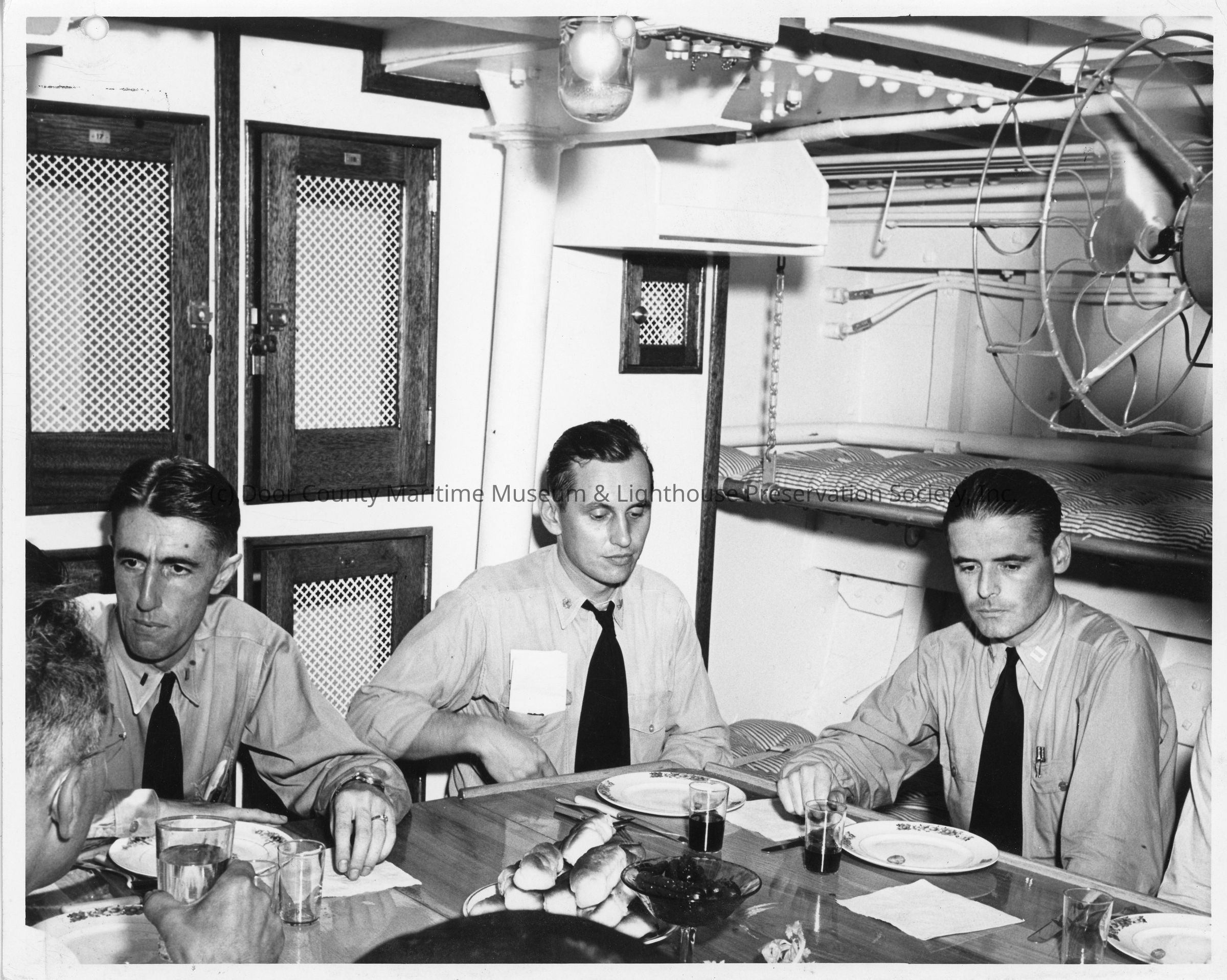 Men at dinner table aboard SC-642 during sea trial July 18, 1942