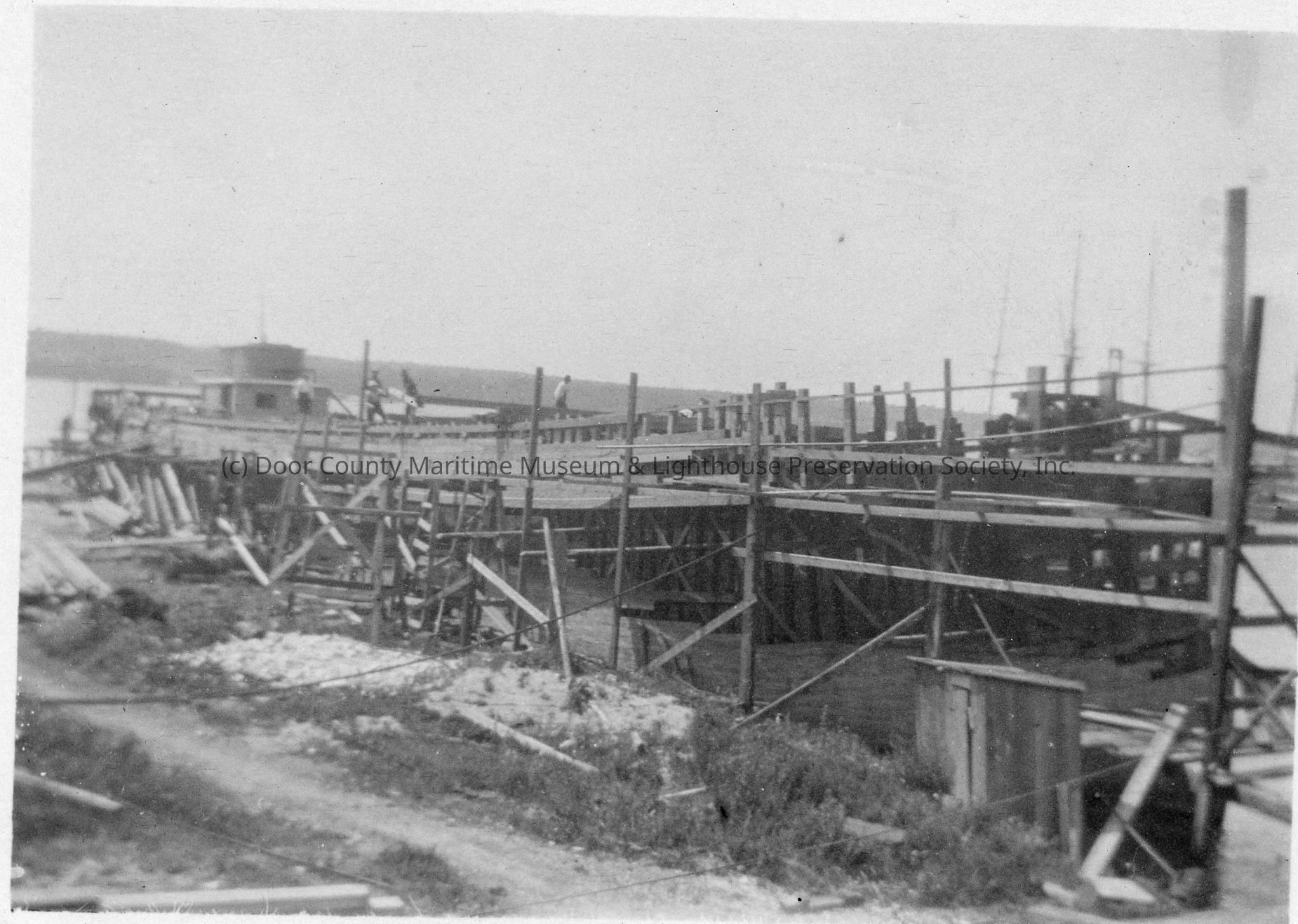 Men constructing ship