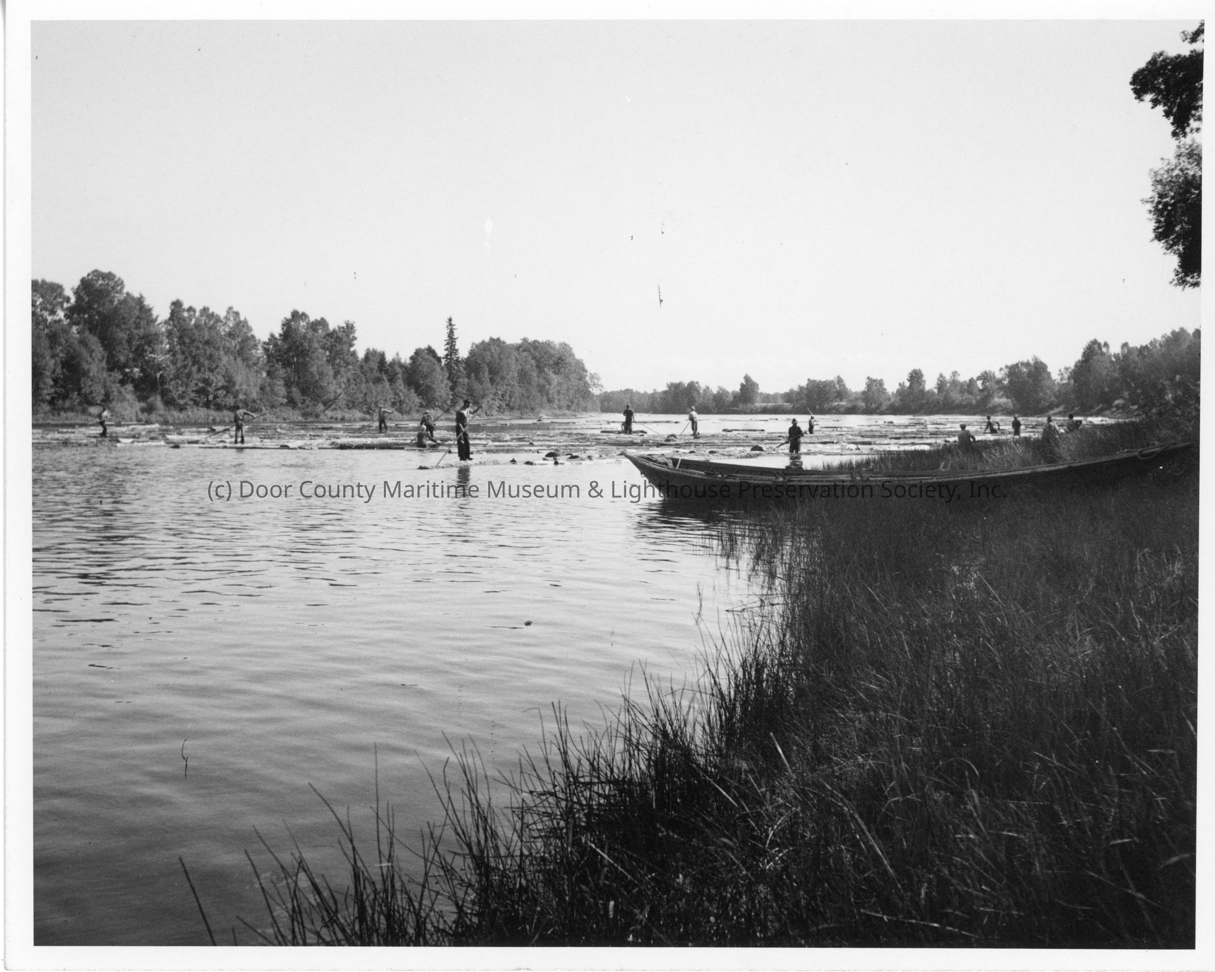 Men driving logs in a river mississagi drive August 1944