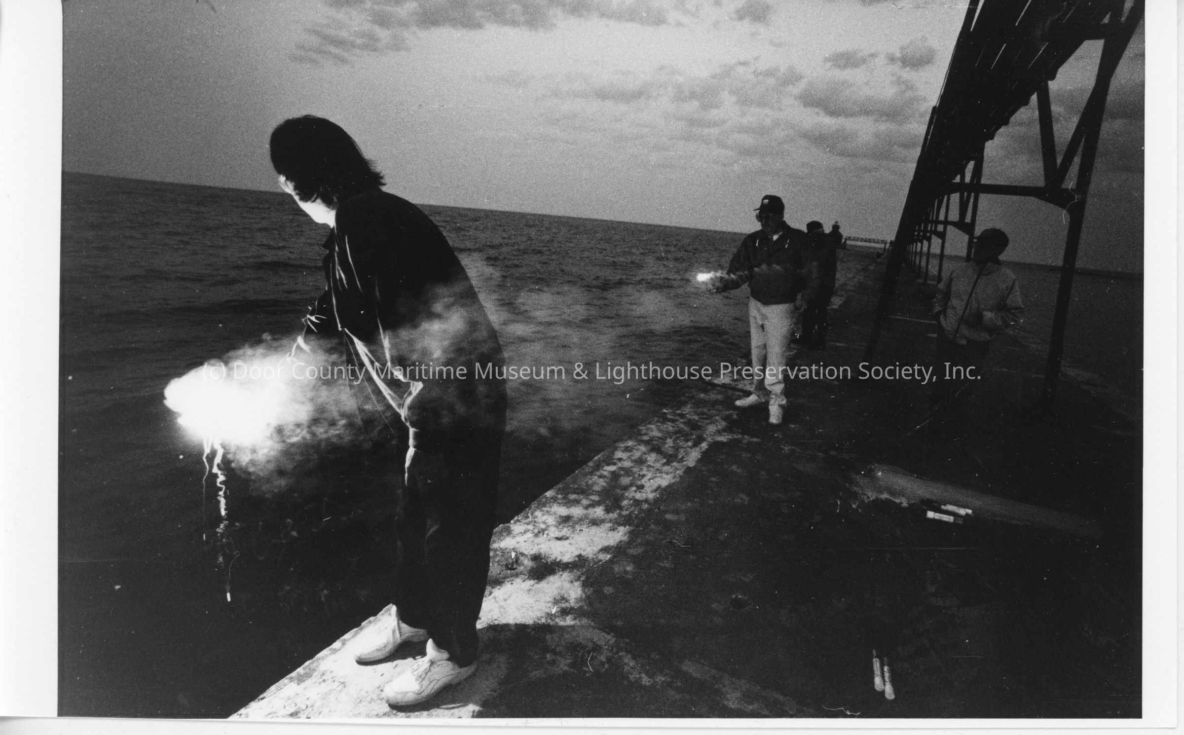 Men holding flares at Sturgeon Bay ship canal
