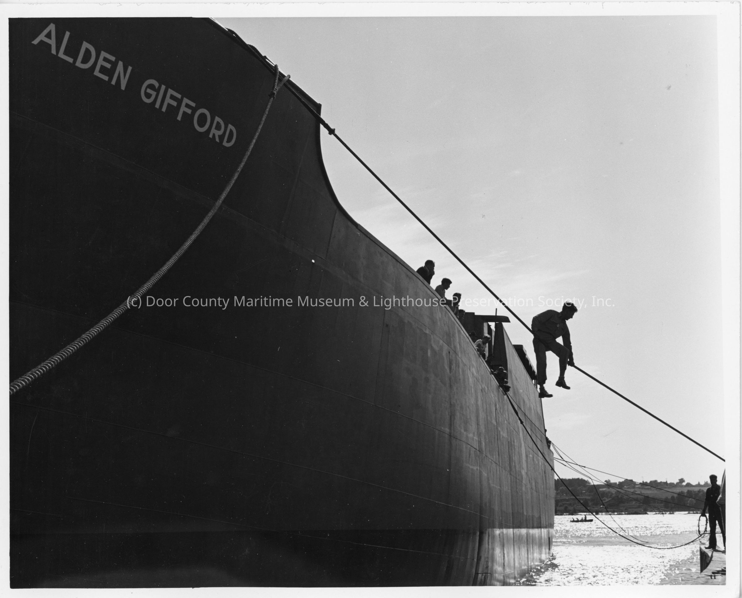 Men holding mooring ropes attached to Alden GiffordEntry/Object ID