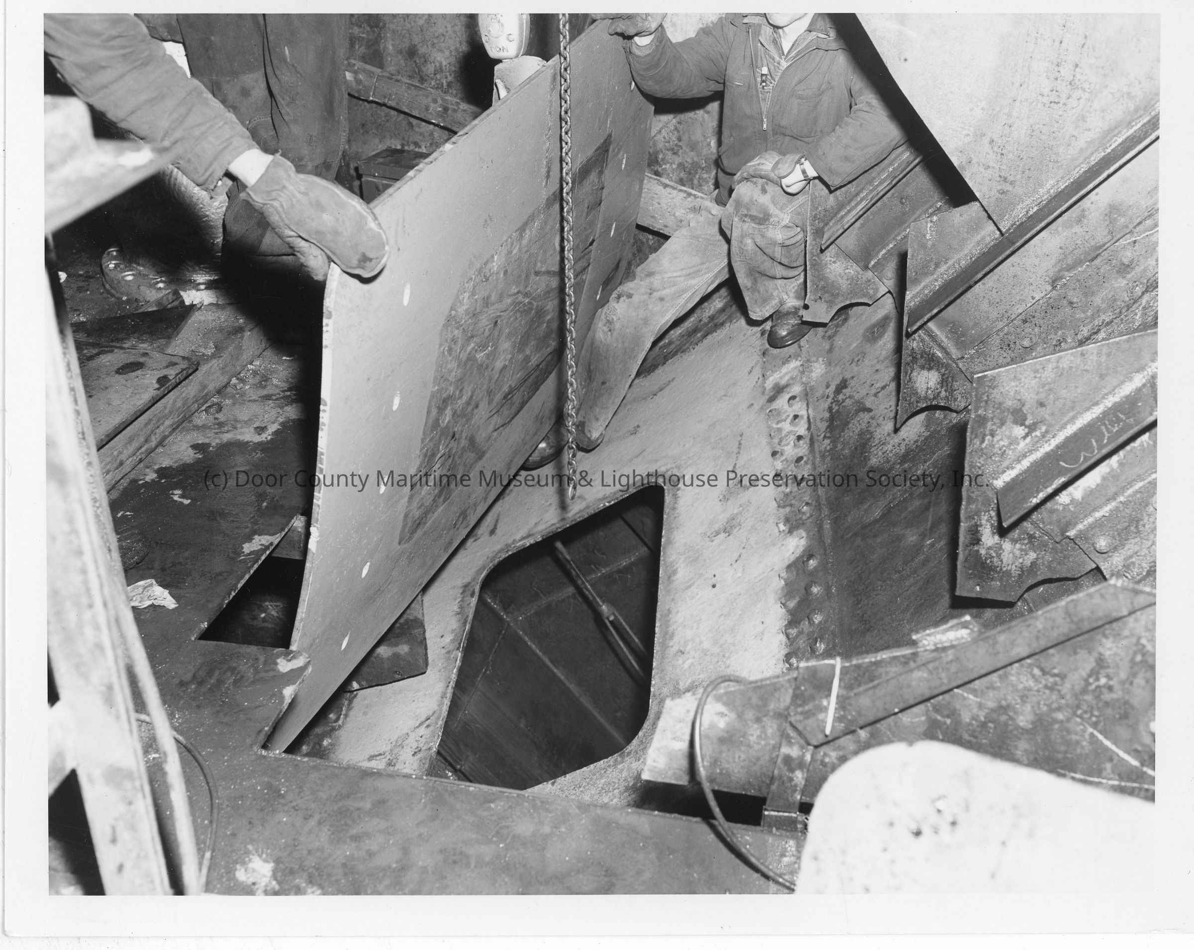 Men holding up panel in Shenango interior at Christy Corp March 31, 1952