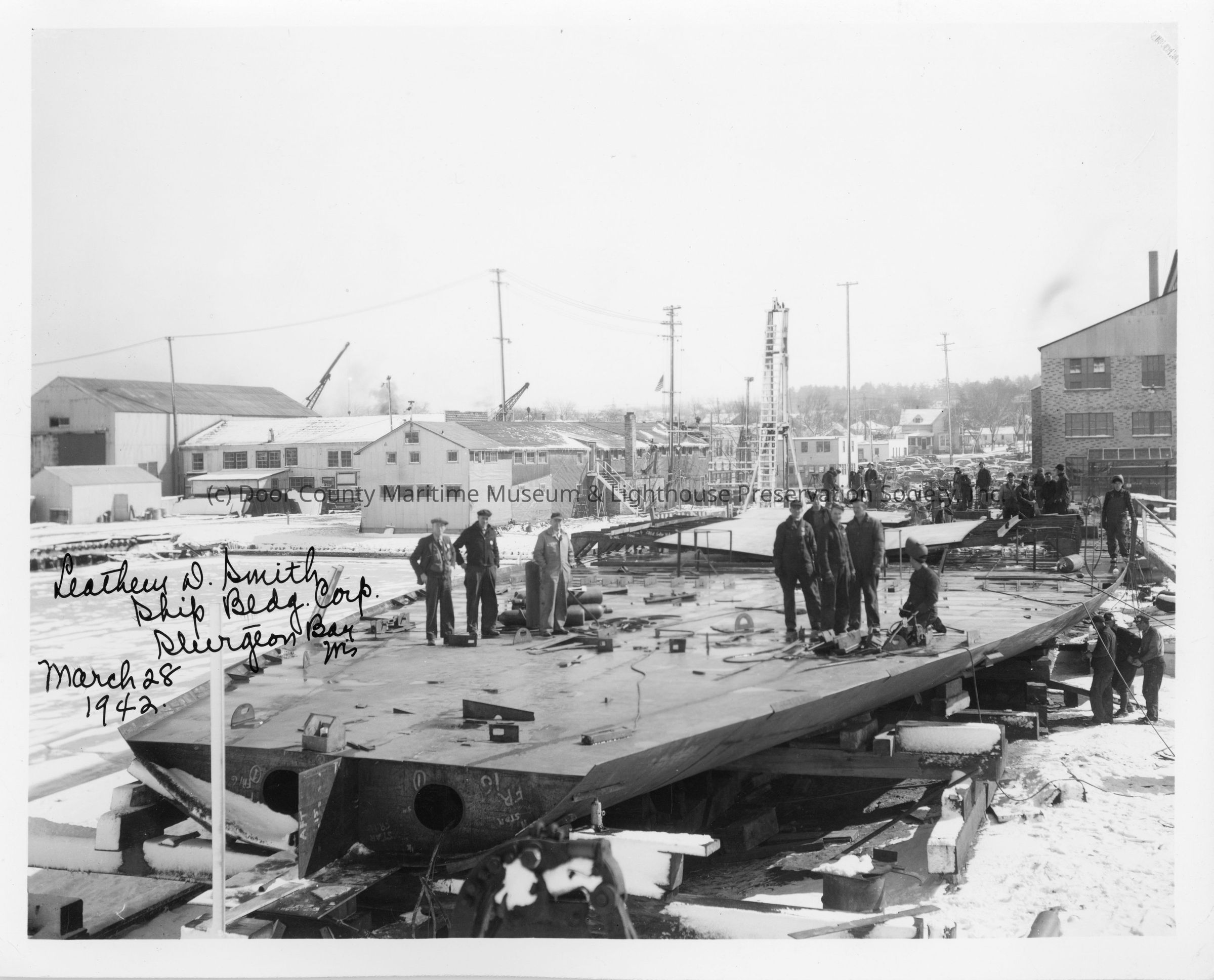 Men standing on hull at Leathem D. Smith Shipbuilding Co. 1942Entry/Object ID