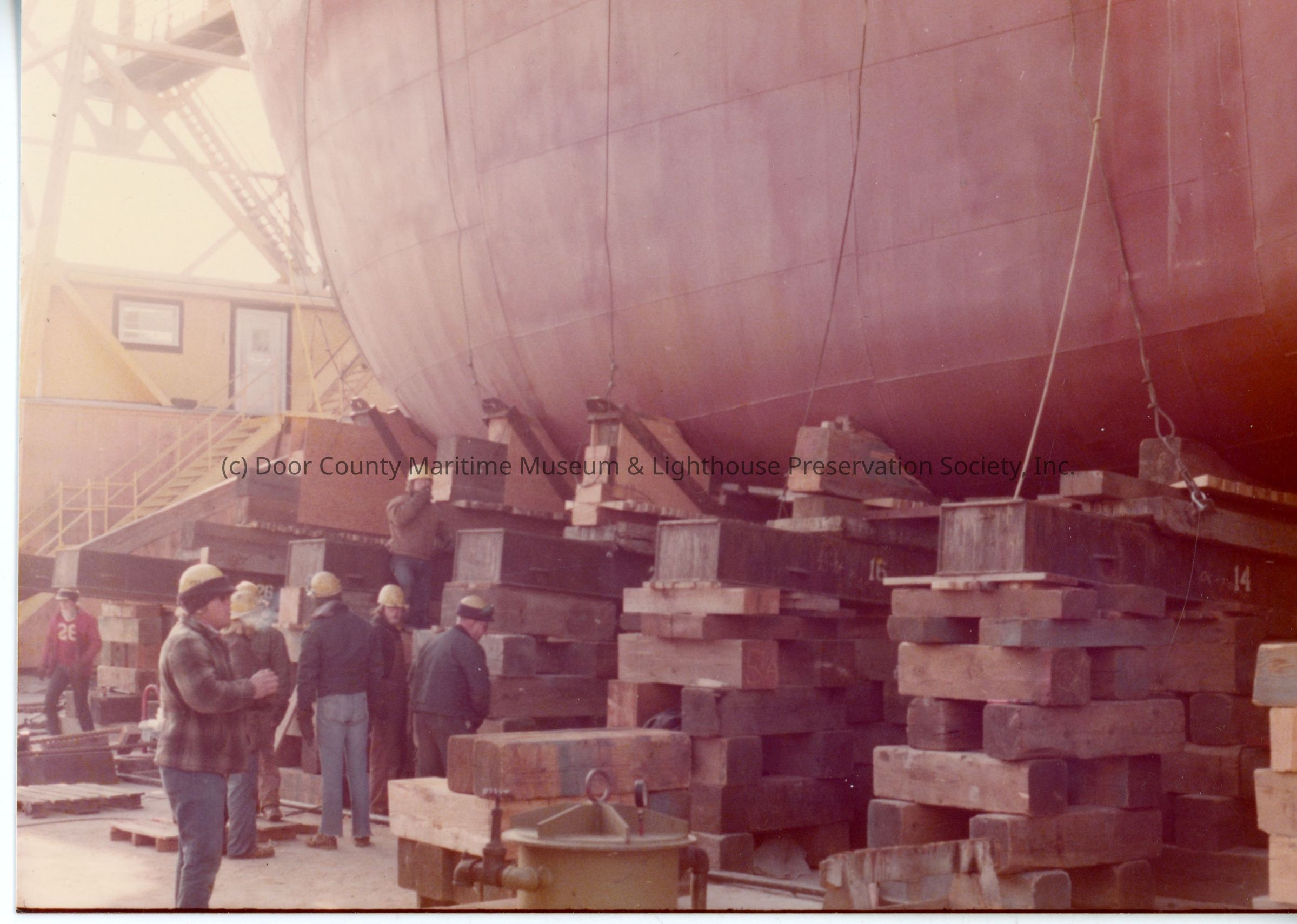 Men working on skids supporting Jamie A. Baxter pre-launch at PBI November 18, 1976Entry/Object ID