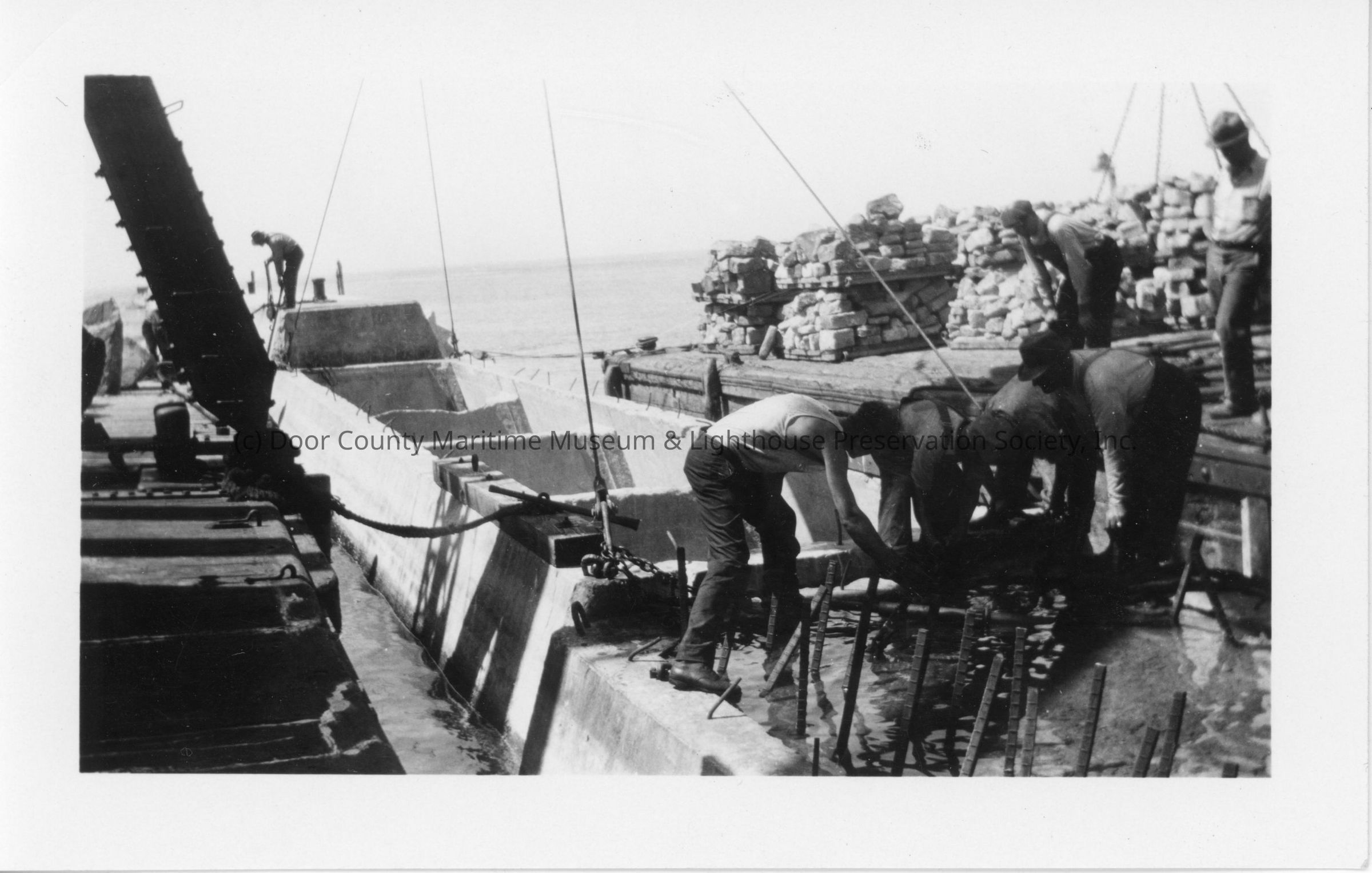 Men working on stone barge