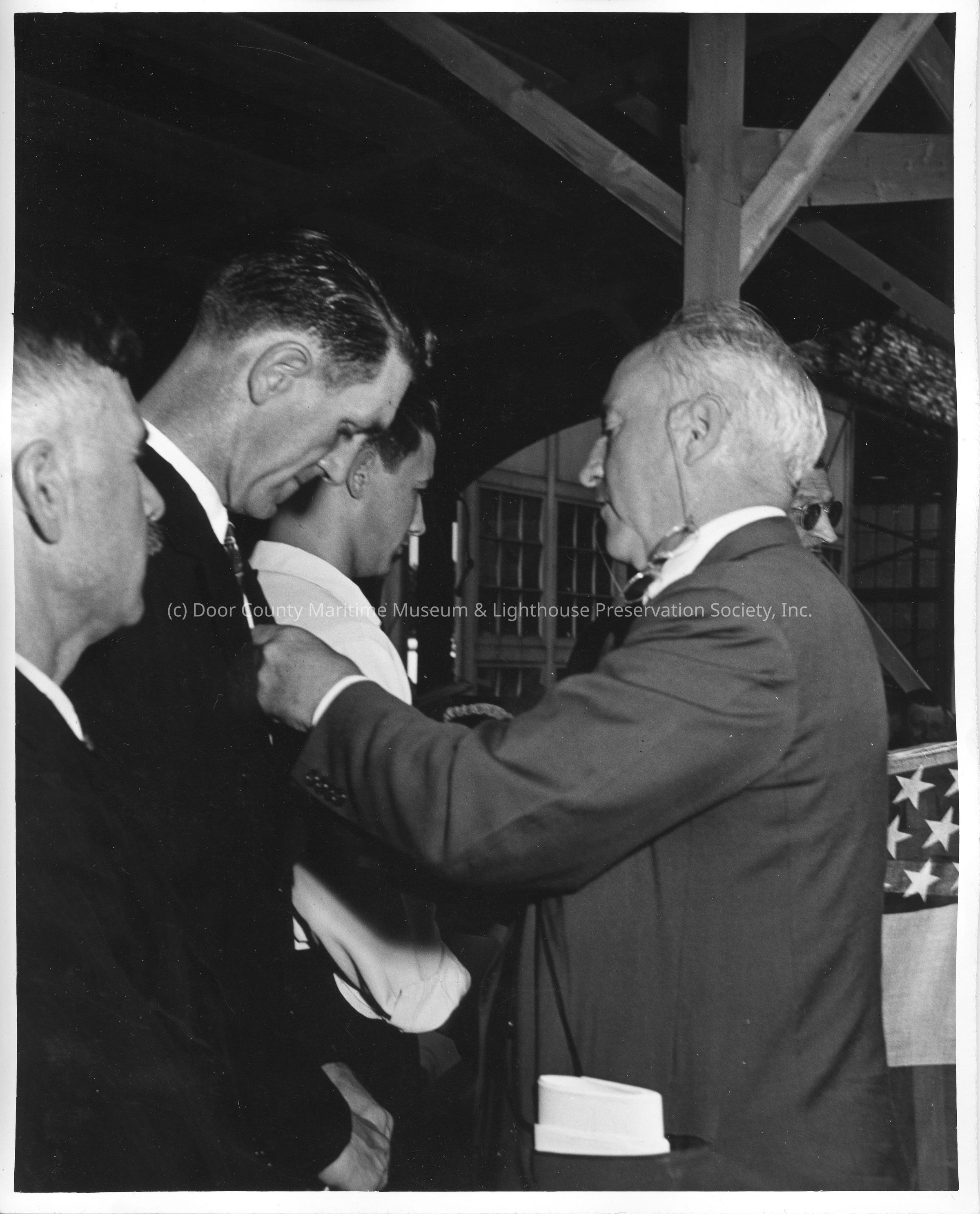 Merit badges being pinned on three L.D. Smith employeesEntry/Object ID