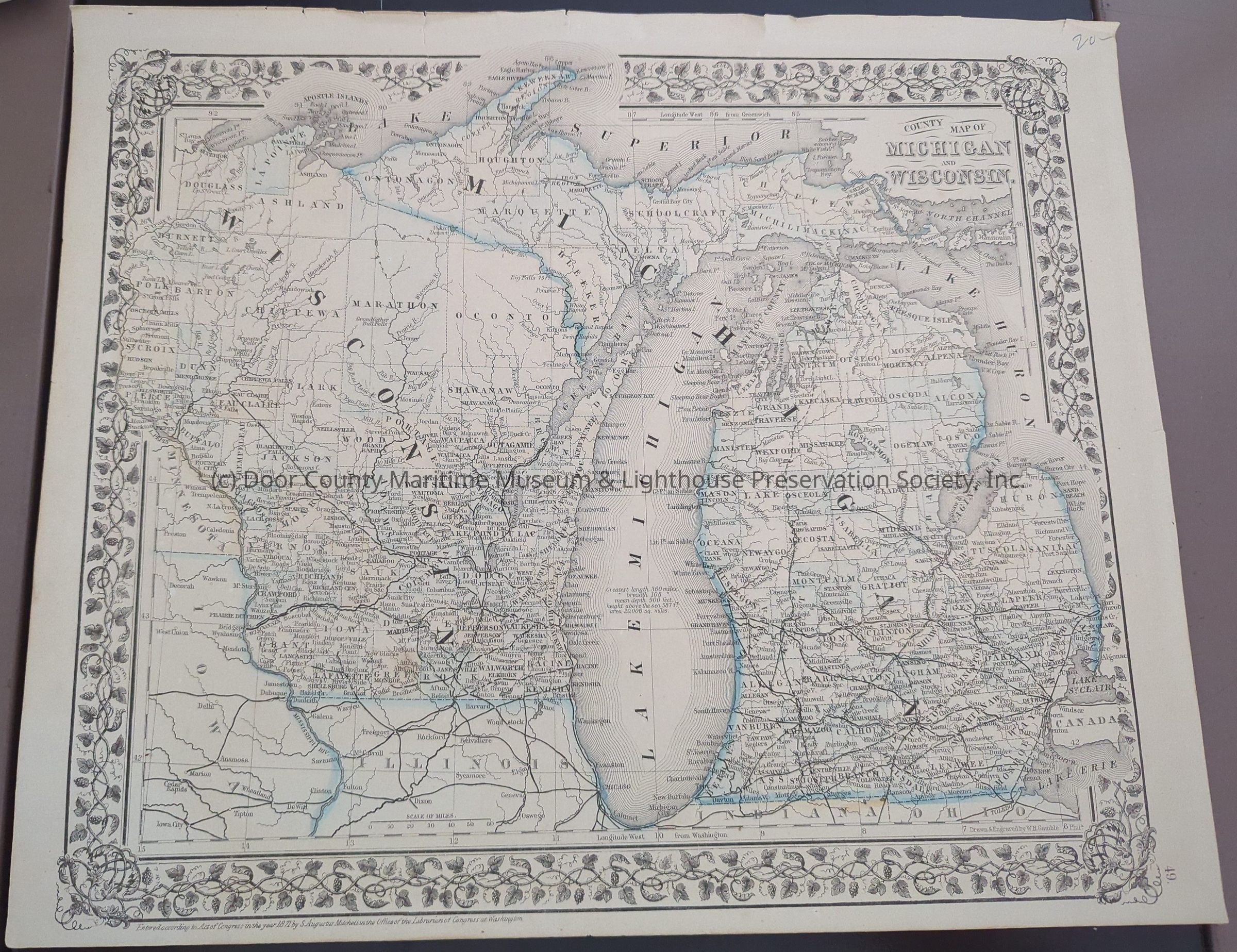 Michigan and Wisconsin County Map 1871