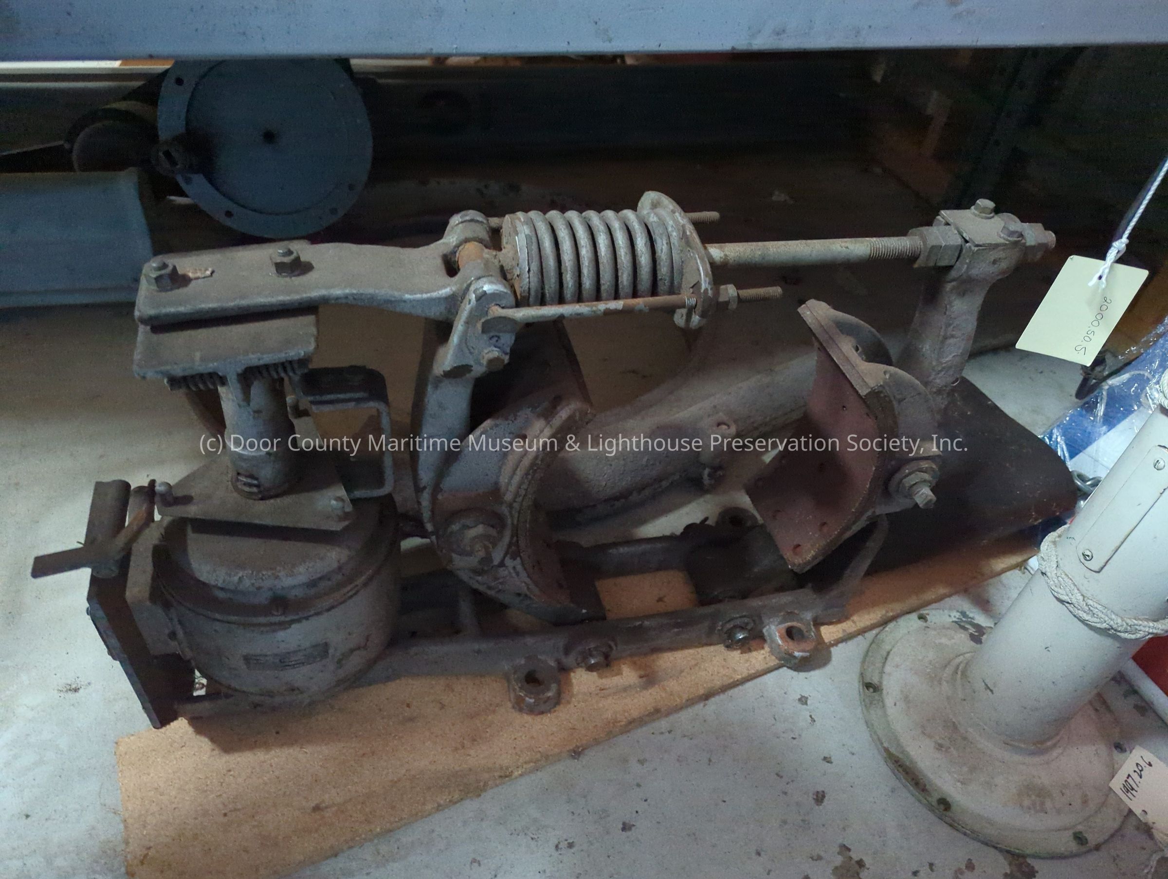 Silver metal with some orange showing through. Spring on top with rusty drum pad