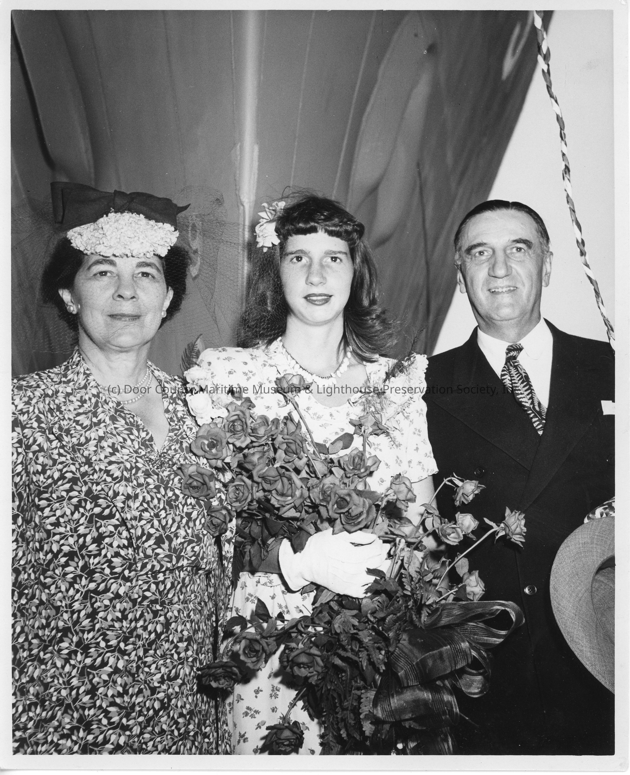 Miss Joan Brugess in center holding roses at PC-1175 christeningEntry/Object ID