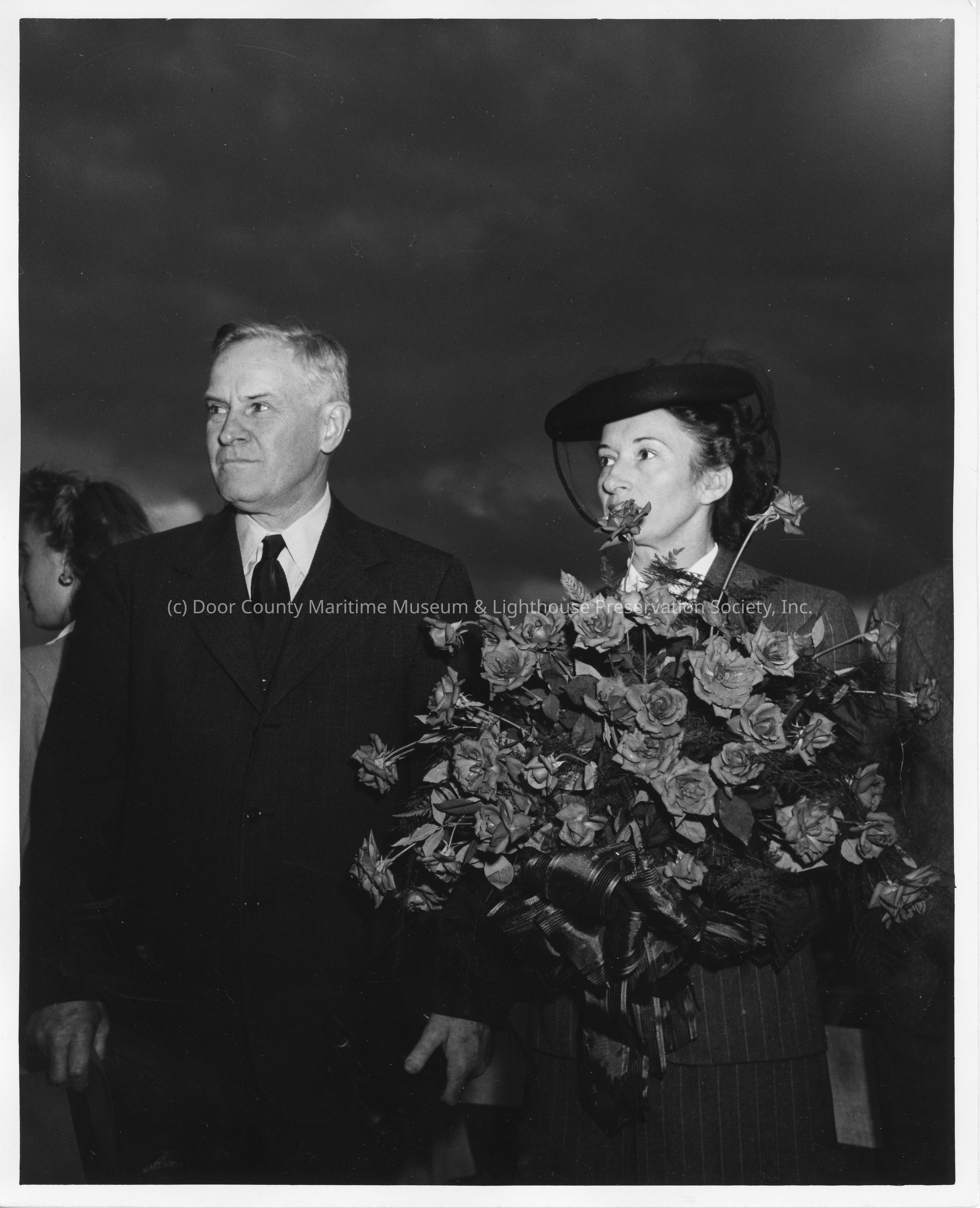 Mr. and Mrs. Sydney T. Smith holding roses