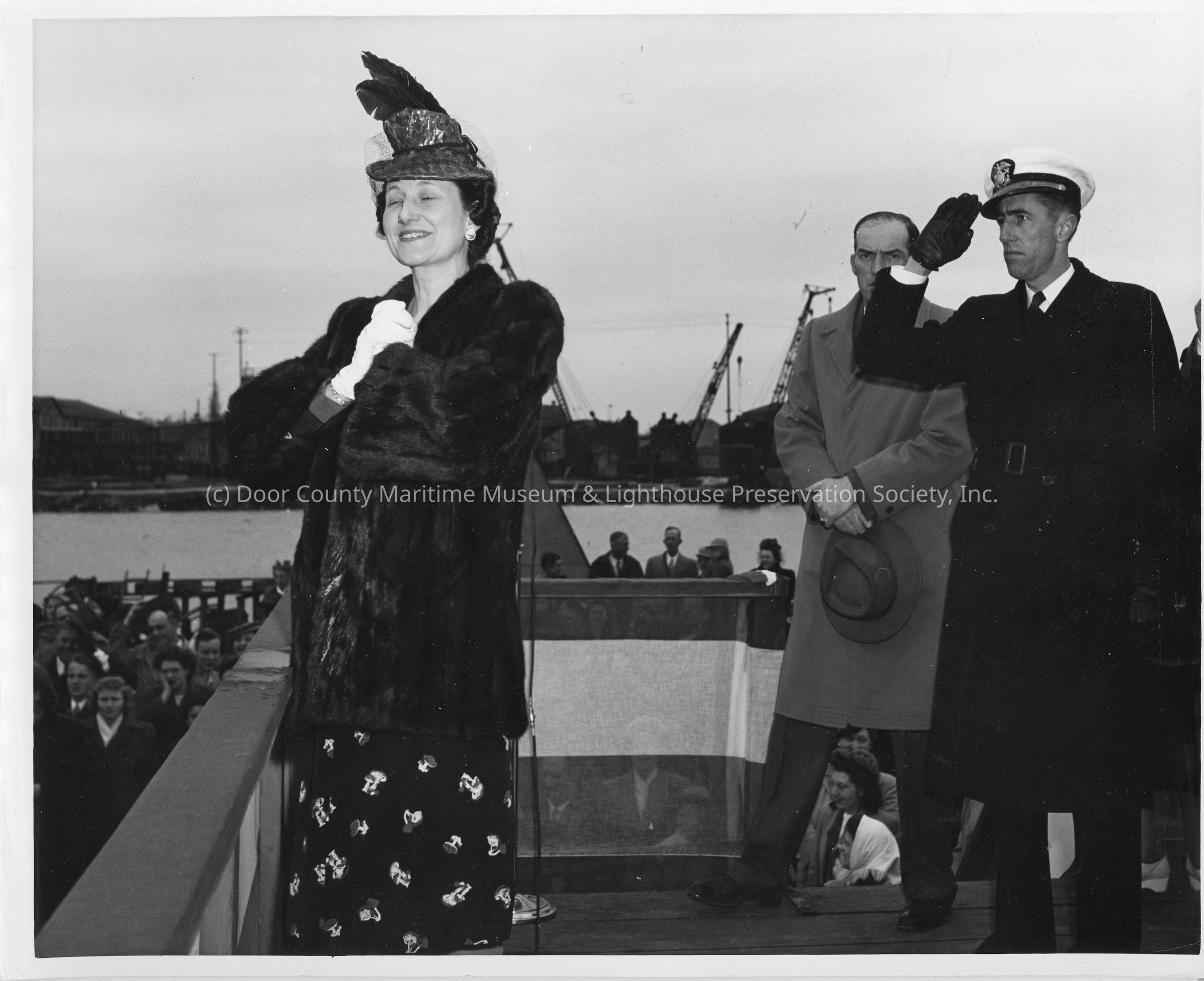 Mrs. F. A. Floden at christening of YW-126 Tulare