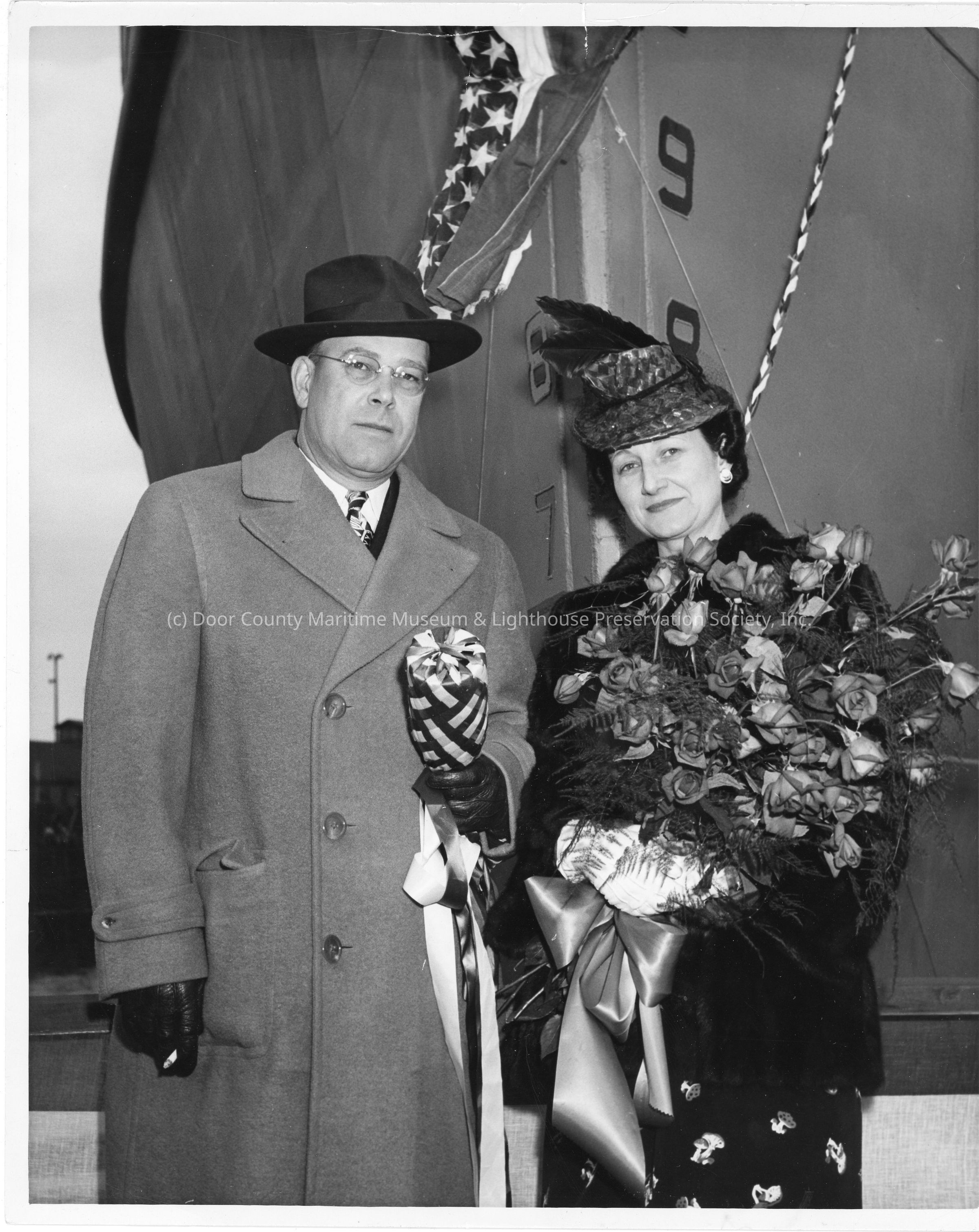 Mrs. F.A. Foldin and husband at christening of YW-126Entry/Object ID