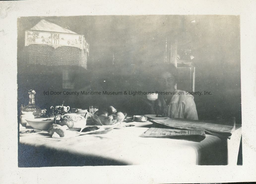 Mama (Mrs. Hotz) at breakfast in Glencoe.