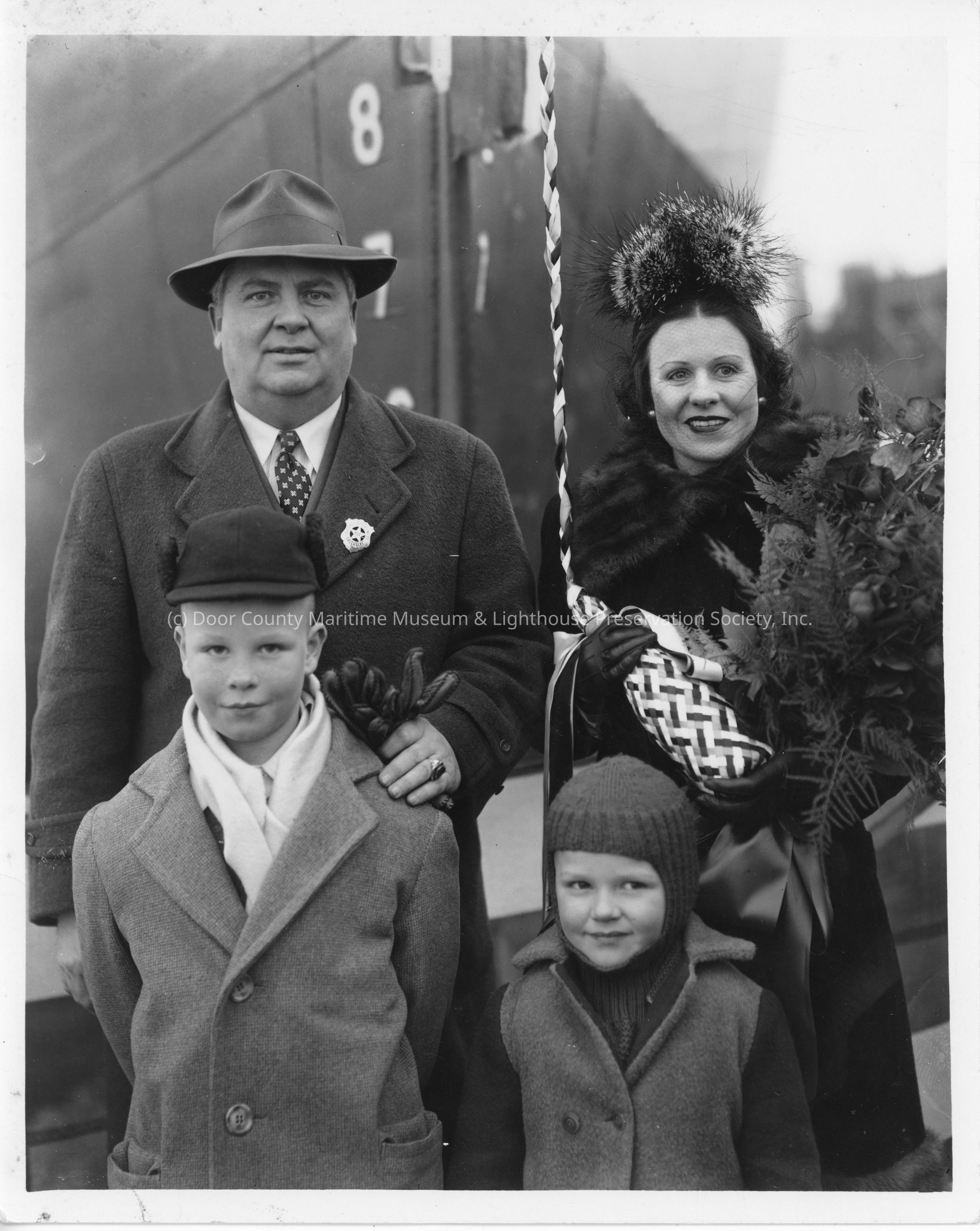 Mrs. John Brogan and family standing front of William Howland holding christening bottleEntry/Object ID