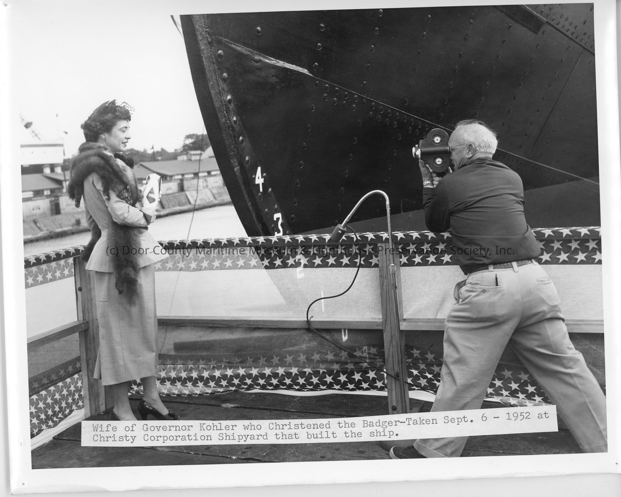 Mrs. Kohler christening the Badger September 6, 1952Entry/Object ID