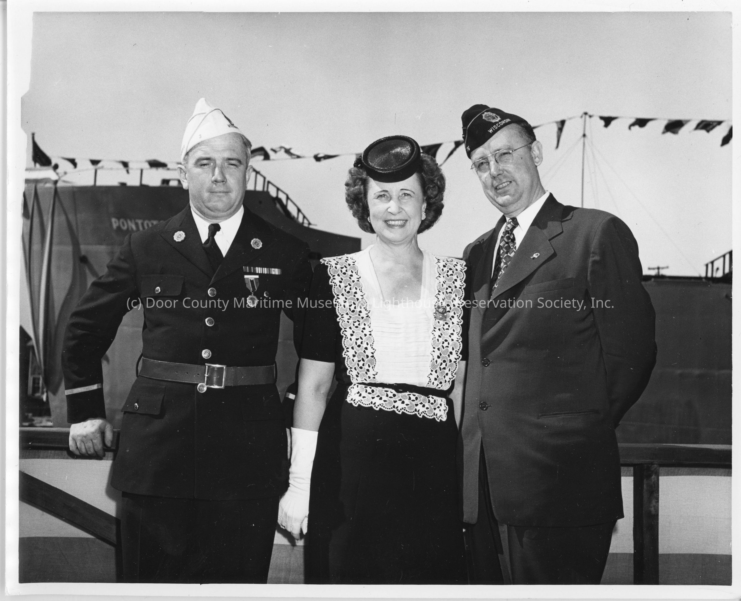Mrs. Lawrence H. Smith standing between two menEntry/Object ID