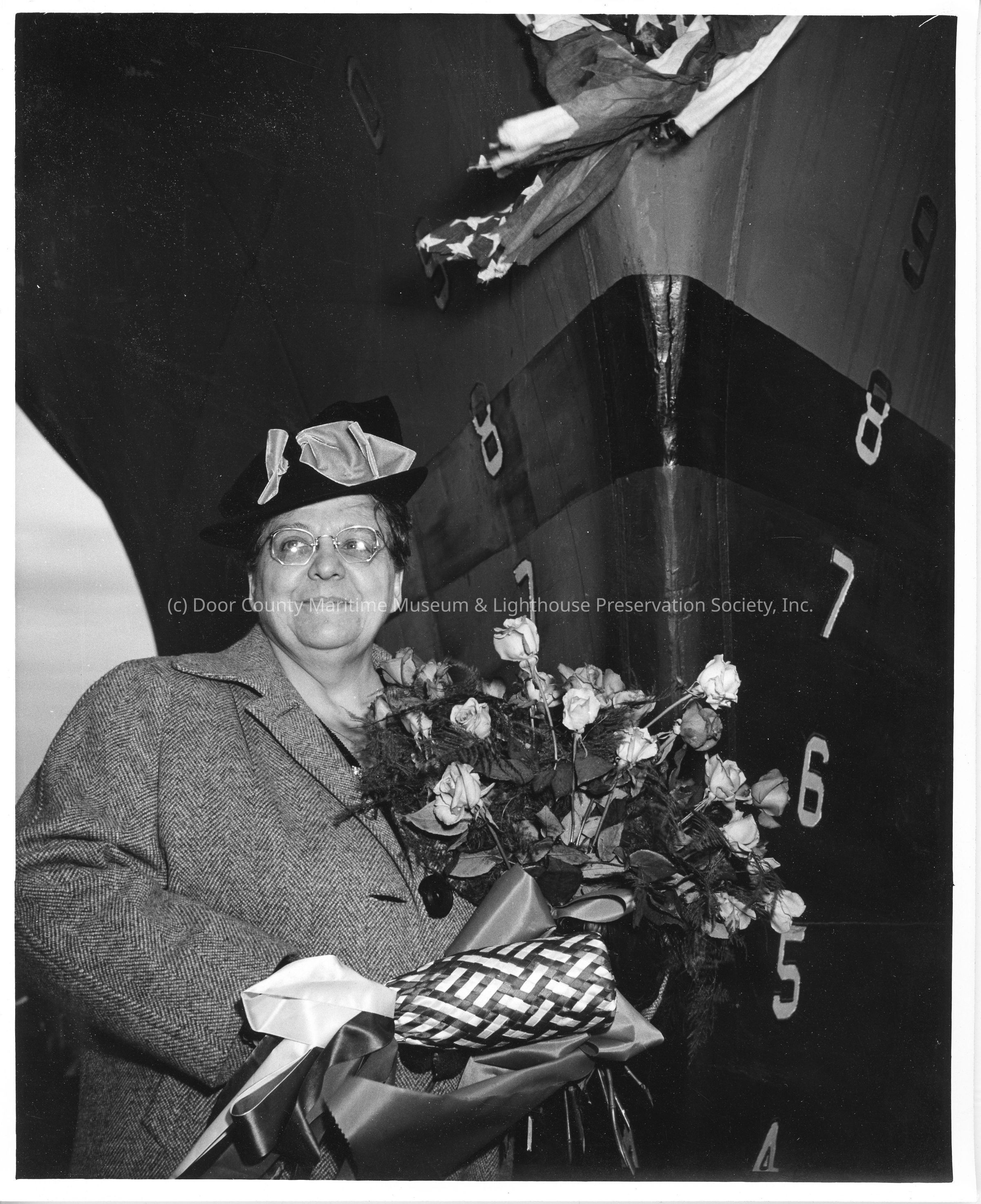 Mrs. Theodore E. Lyman at christening of AN-88 Shakamaton