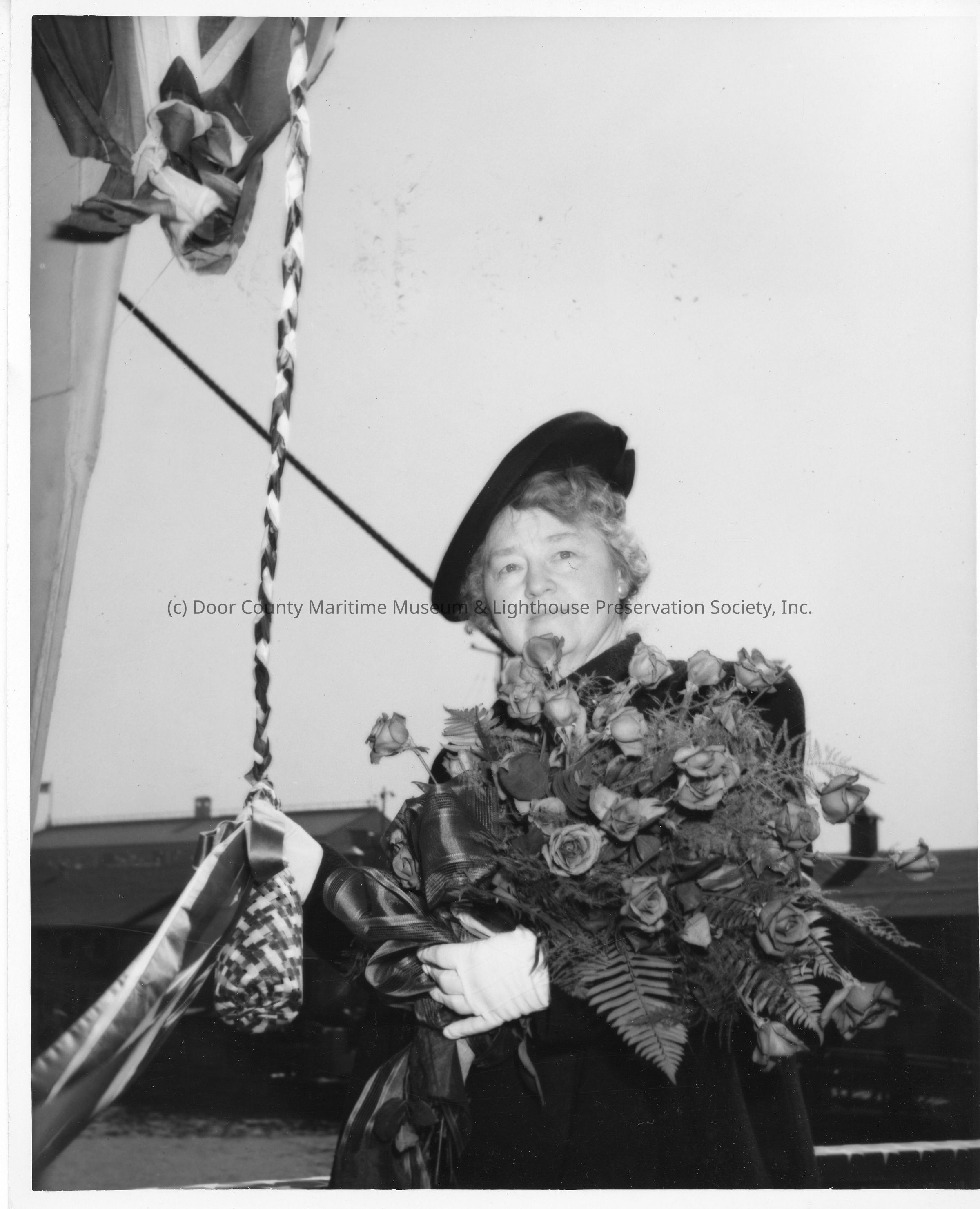 Mrs. William E. Wagener holding roses and christening bottleEntry/Object ID